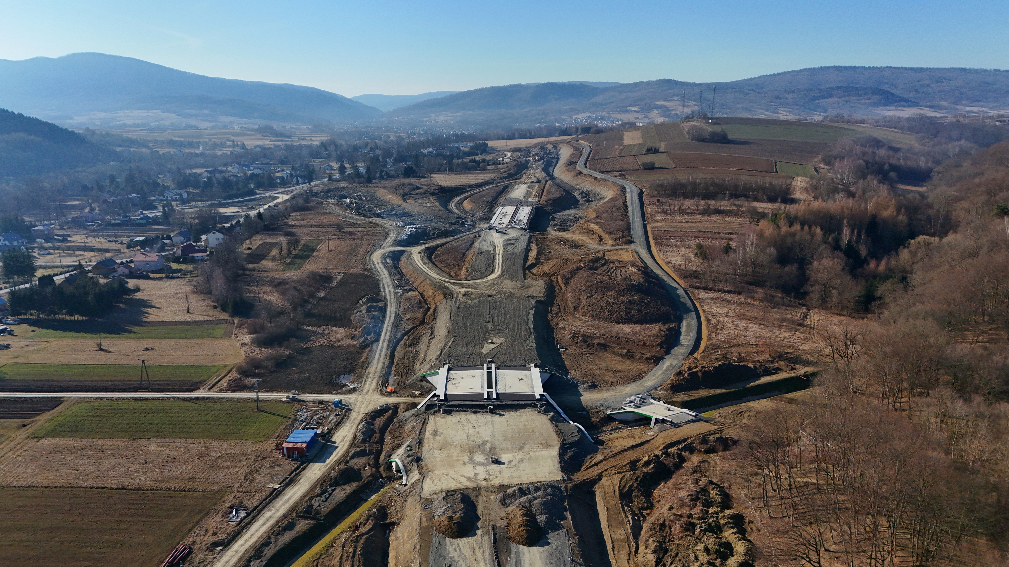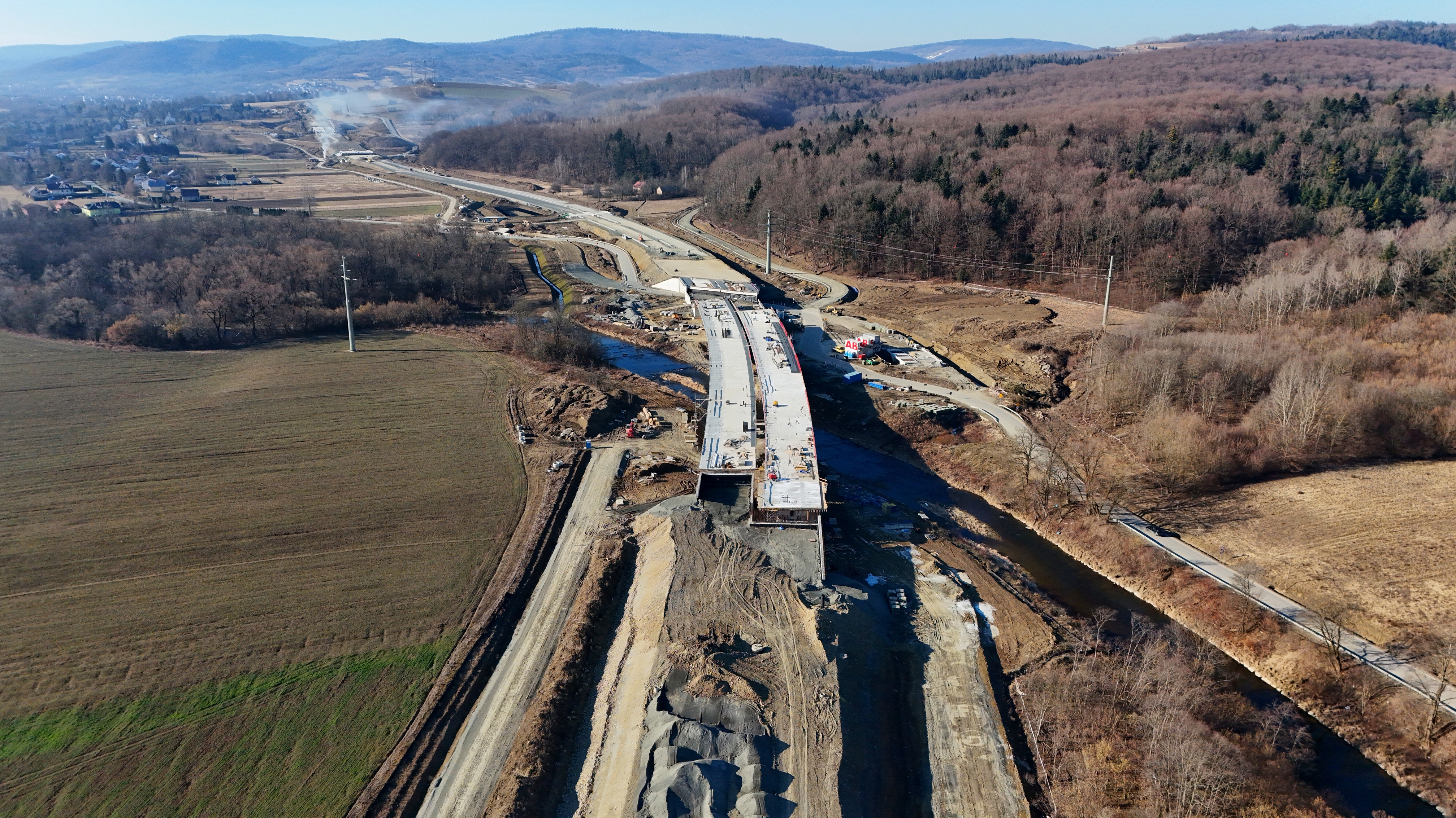 Sprzyjające warunki atmosferyczne w trakcie przerwy zimowej pozwoliły na realizację robót w niemalże każdej branży. Największe postępy widać w zakresie robót mostowych. Na obiektach inżynierskich zostały do wykonania roboty wyposażeniowe jak kapy chodnikowe, bariery ochronne na obiektach oraz nawierzchnie bitumiczne. Planowany jest także montaż urządzeń dylatacyjnych i kolektorów odwodnienia obiektów oraz, umocnienie stożków i zwieńczenia murów oporowych.