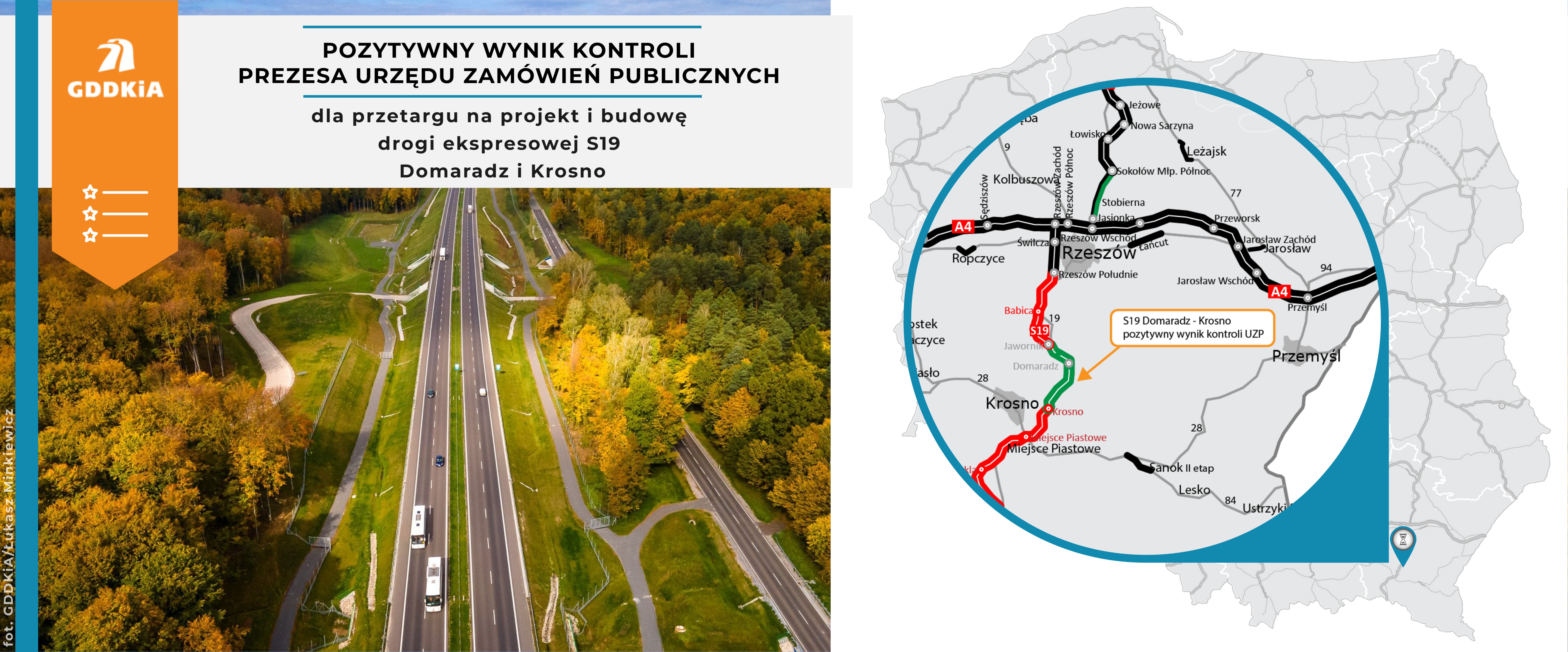 Pozytywnym wynikiem zakończyła się kontrola uprzednia przetargu na projekt i budowę drogi ekspresowej S19 między węzłami Domaradz i Krosno, którą przeprowadził Prezes Urzędu Zamówień Publicznych. Kolejnym krokiem, po przedstawieniu przez wykonawcę gwarancji należytego wykonania robót, będzie podpisanie umowy, co planowane jest w listopadzie.