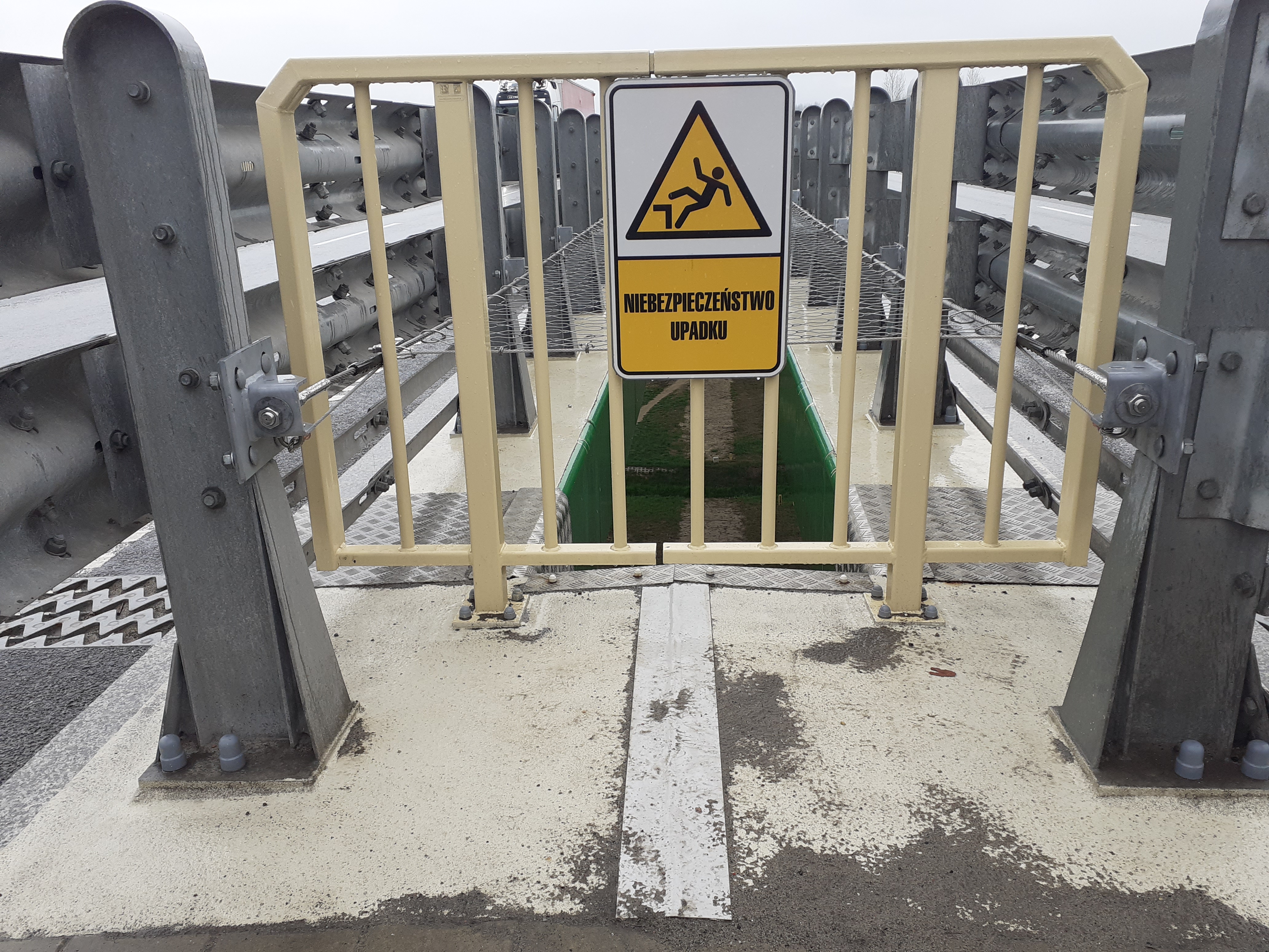 Zgodnie z obowiązującymi przepisami na obiektach inżynierskich montowane są, wyższe od zwykłych, bariery zabezpieczające przed zjechaniem pojazdu poza krawędź obiektu oraz przed upadkiem człowieka z wysokości. GDDKiA dodatkowo wykonuje z siatki stalowej zabezpieczenia przestrzeni pomiędzy sąsiednimi pomostami przęseł obiektów mostowych.