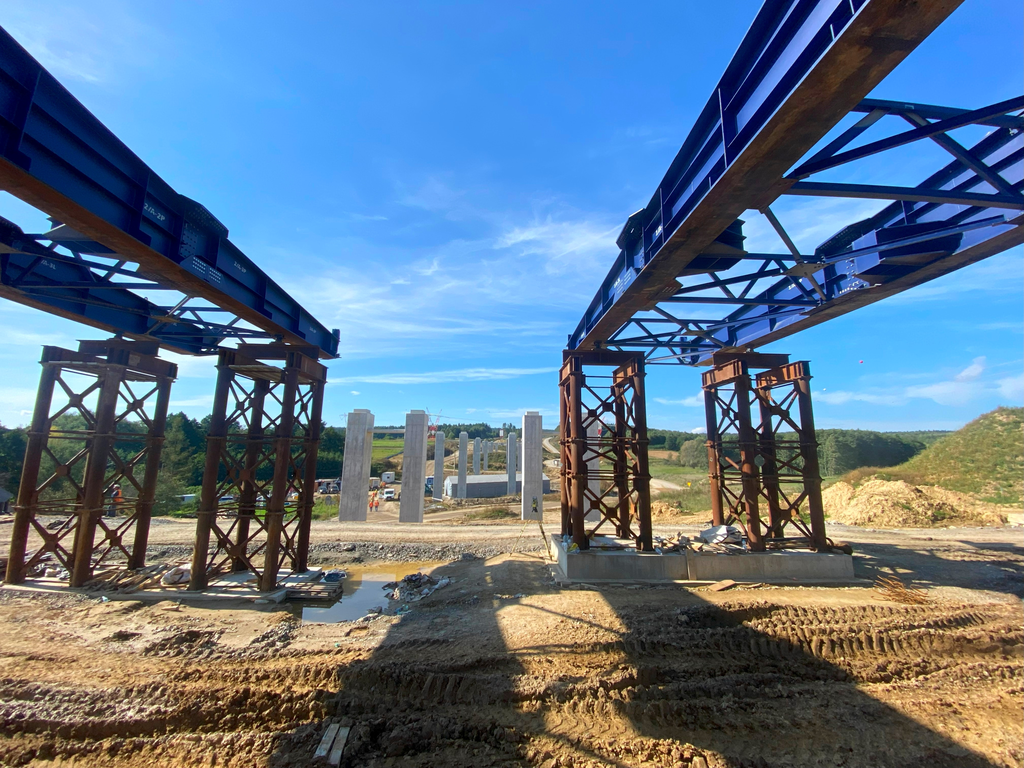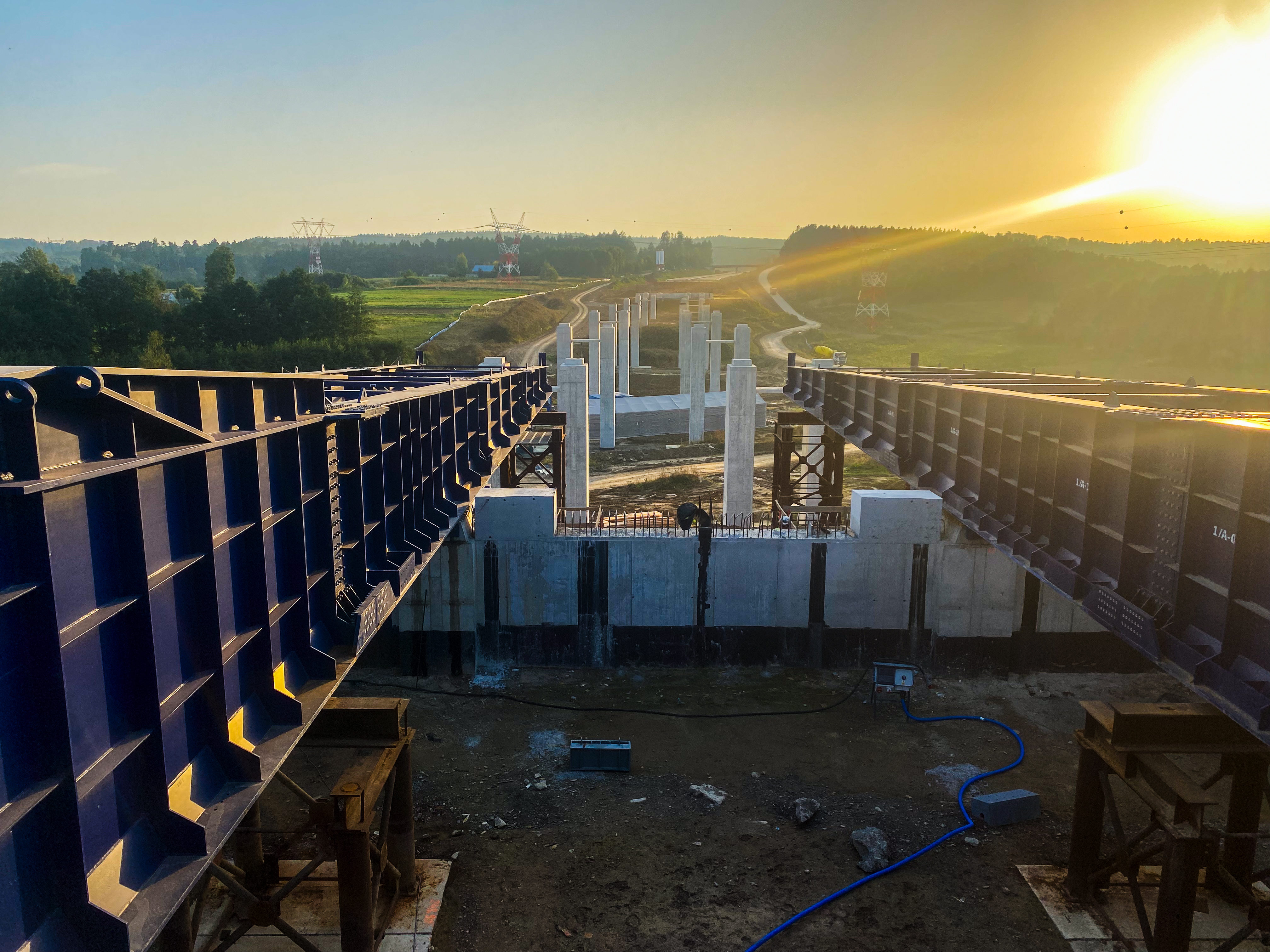 Aktualnie na obiekcie ES-7 wykonane są wszystkie podpory pośrednie oraz podpory skrajne w zakresie I etapu do poziomu ław podłożyskowych.