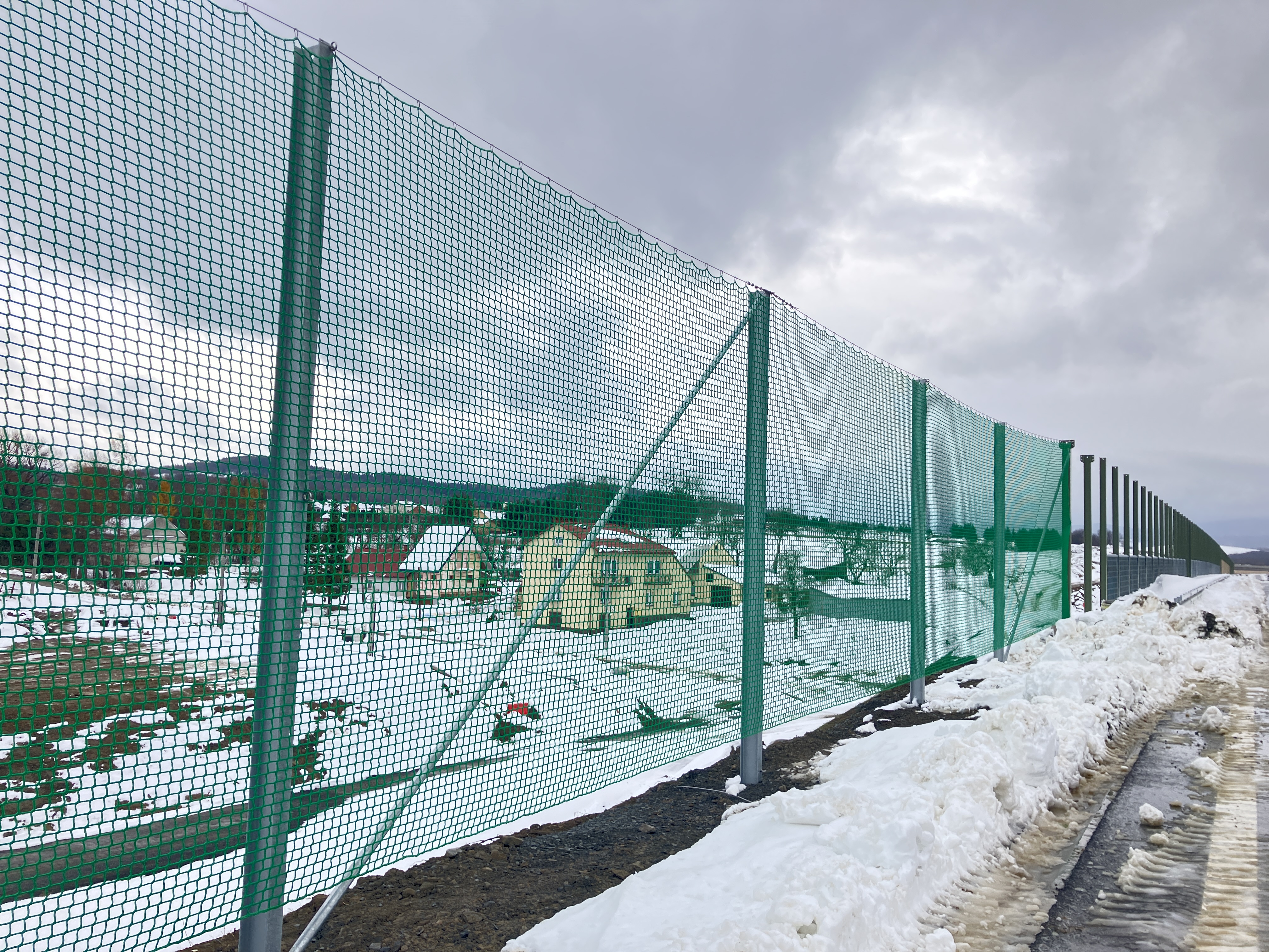 Siatki o wysokości 4 metrów wykonane są z trwałego materiału polimerowego. Będą prowadzić nietoperze na wyższy pułap lotu, umożliwiając im bezpieczne przekraczanie drogi. W niektórych lokalizacjach siatki zostaną zamontowane na istniejących ekranach akustycznych i przeciwolśnieniowych. Rozwiązanie to stosujemy w miejscach, gdzie stwierdzono regularne przeloty nietoperzy w poprzek trasy.