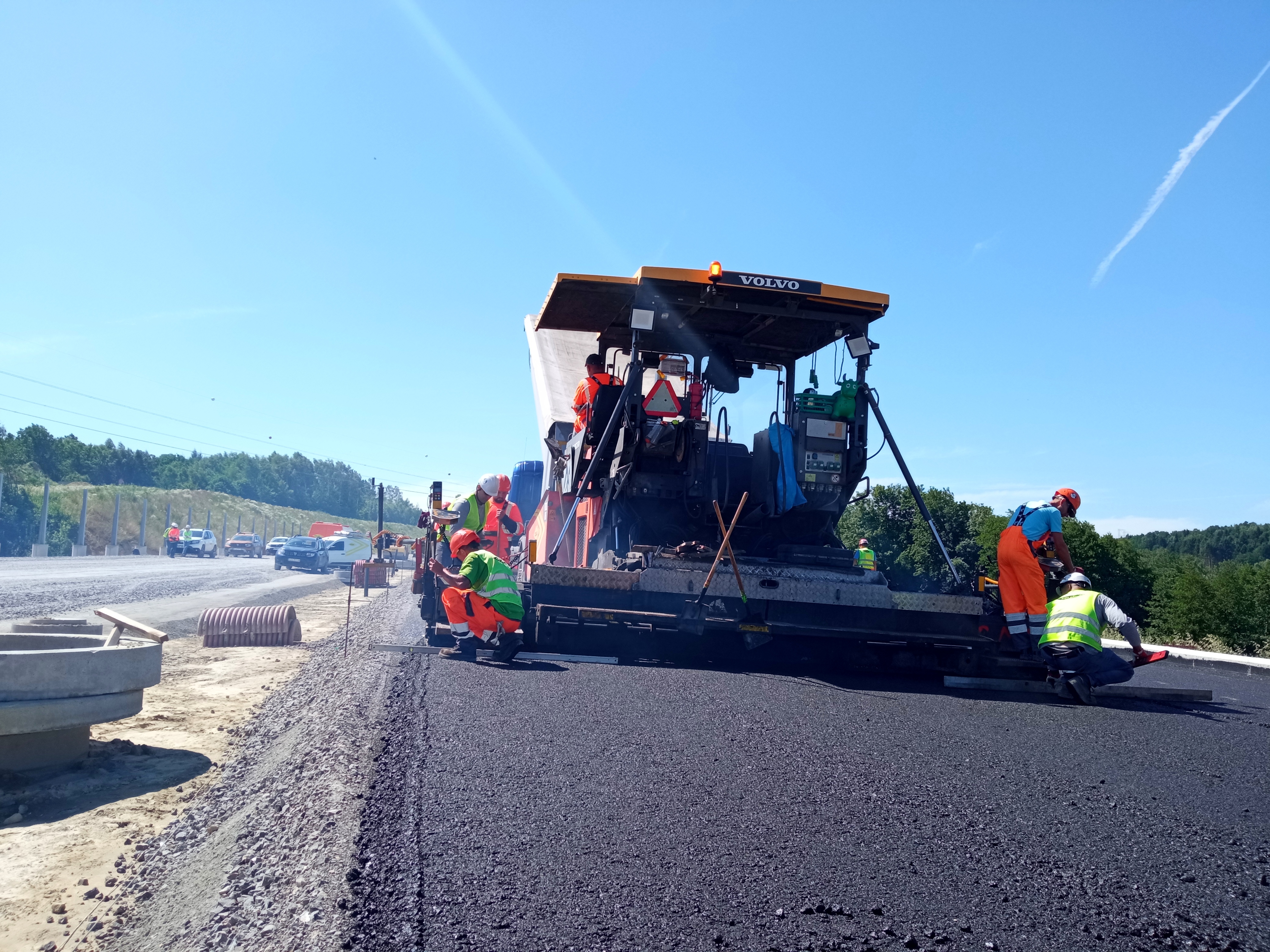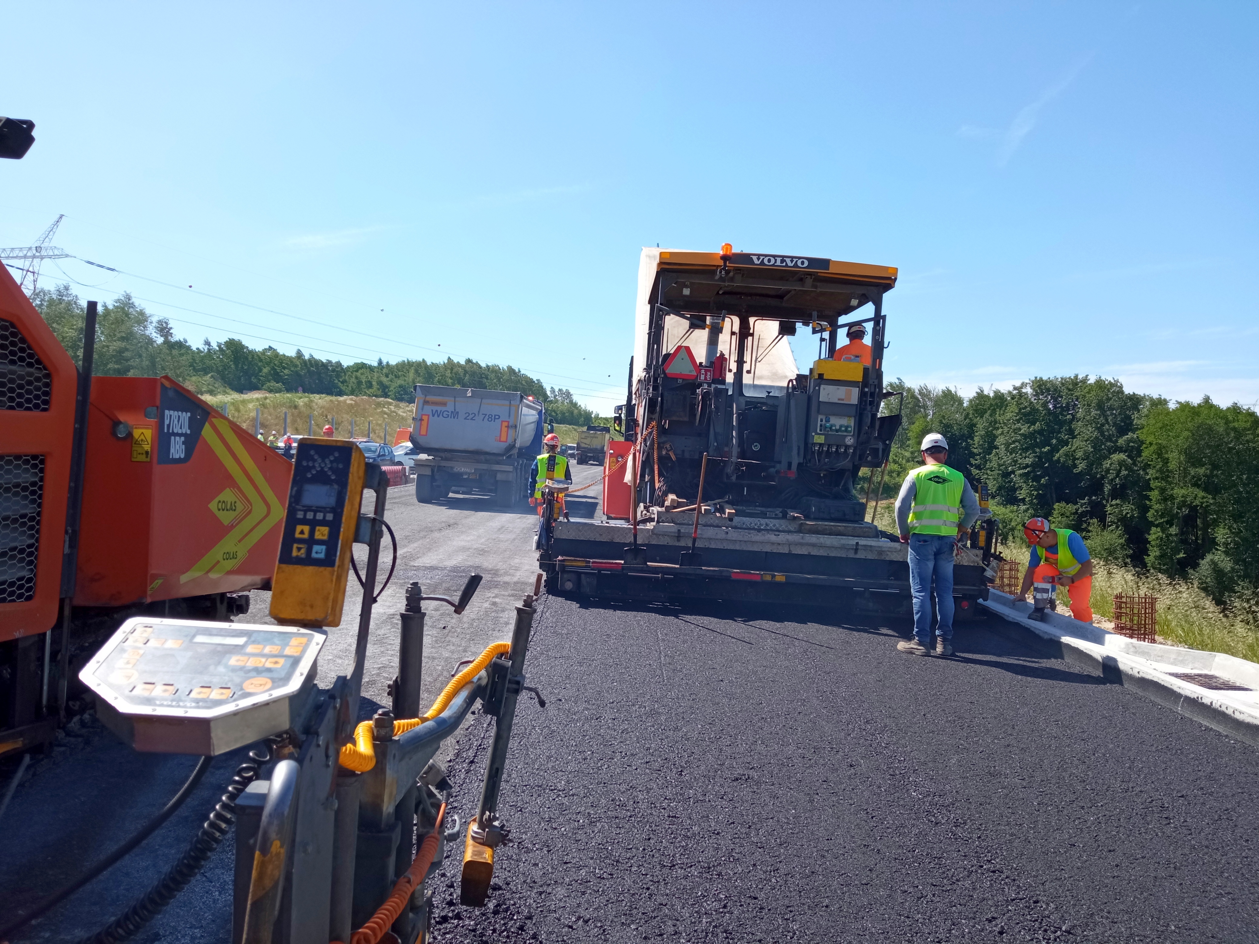 Dosłownie w pocie czoła układali 500-metrową podbudowę z mieszanki AC22P, gdyż w chwili wbudowywania temperatura masy asfaltowej wynosiła ok. 170 °C. Do wykonania odcinka próbnego zużyto łącznie 1 100 ton masy bitumicznej. Aby uzyskać optymalną strukturę nawierzchni, zastosowano dwa gąsienicowe rozściełacze asfaltu, pięć walców drogowych oraz flotę samochodów dostarczających gorącą masę na plac budowy.