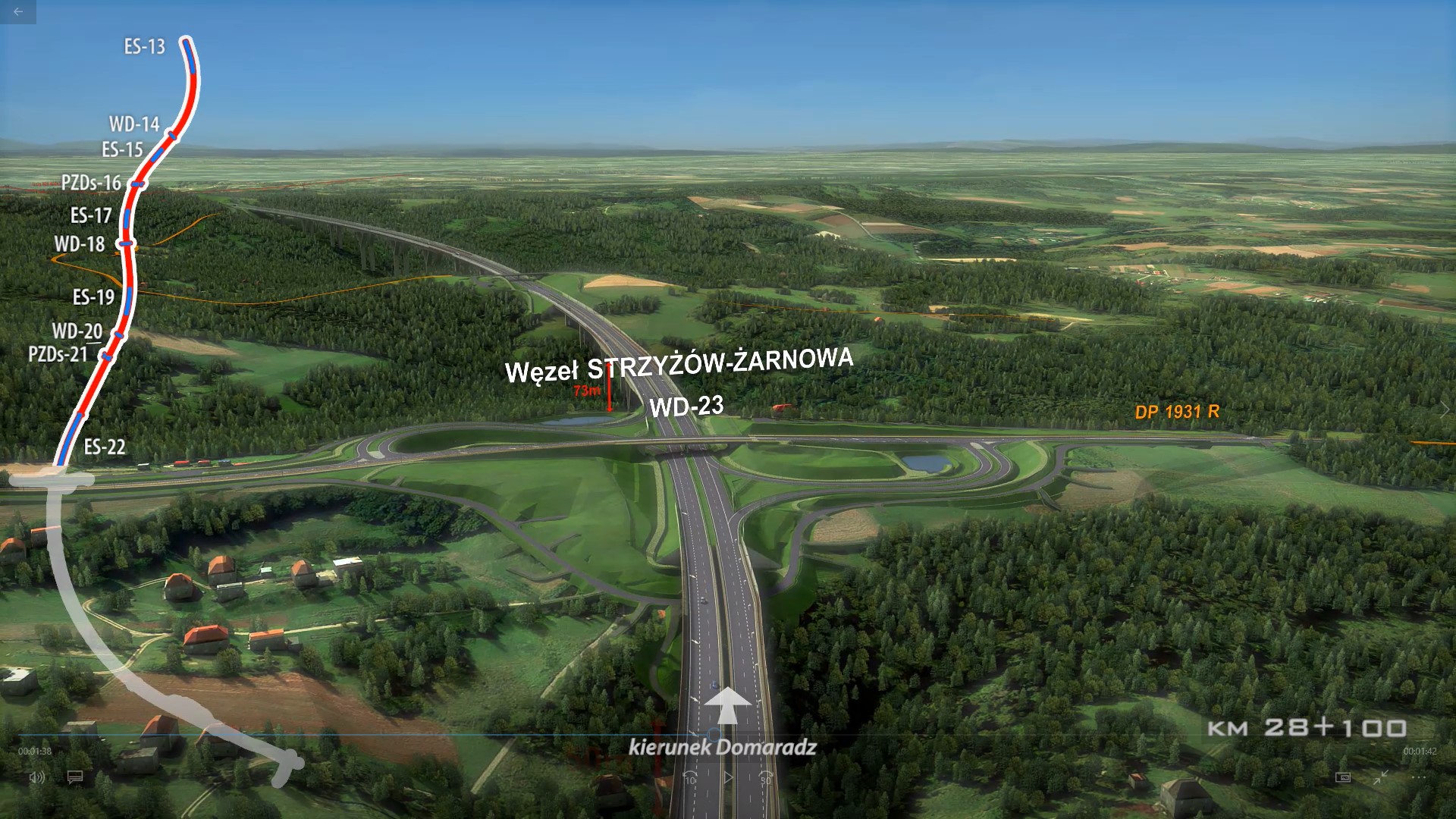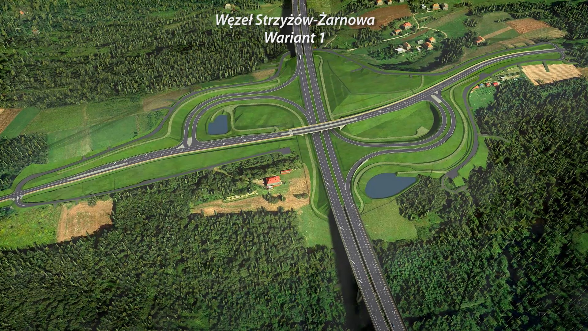 - węzłem drogowym Strzyżów-Żarnowa (zlokalizowany na skrzyżowaniu z drogą powiatową nr 1931R. Na etapie KP przewiduje się dwa warianty realizacyjne węzła: półkoniczyna lub mieszany),