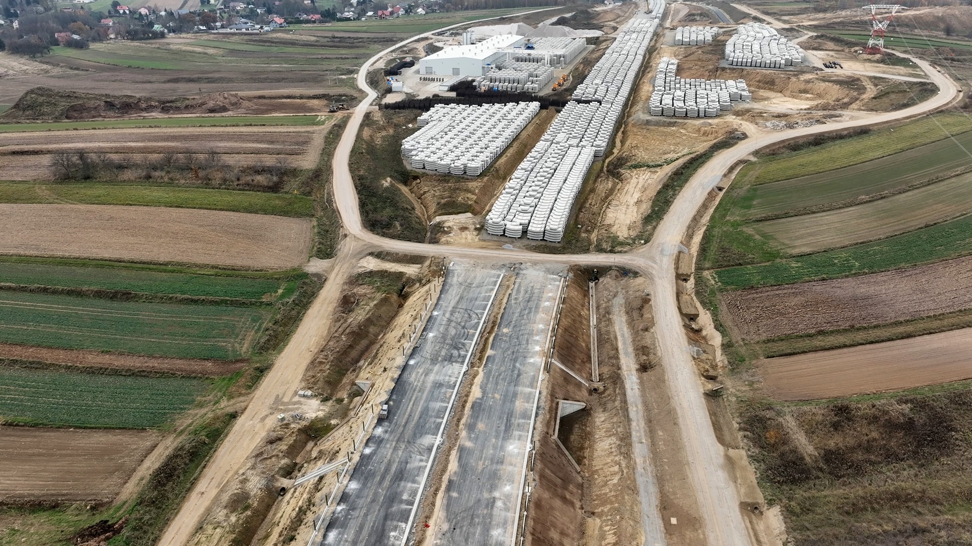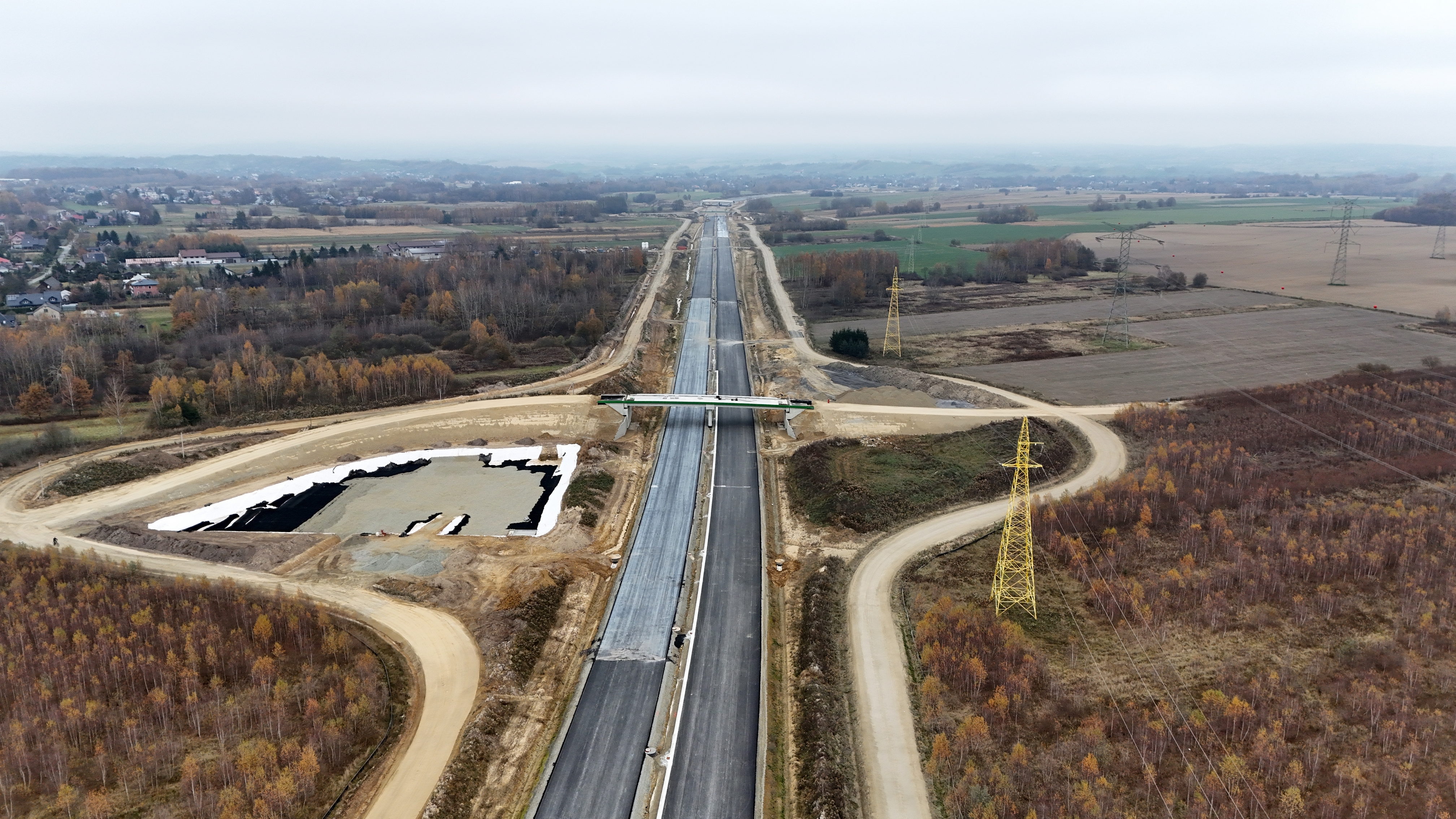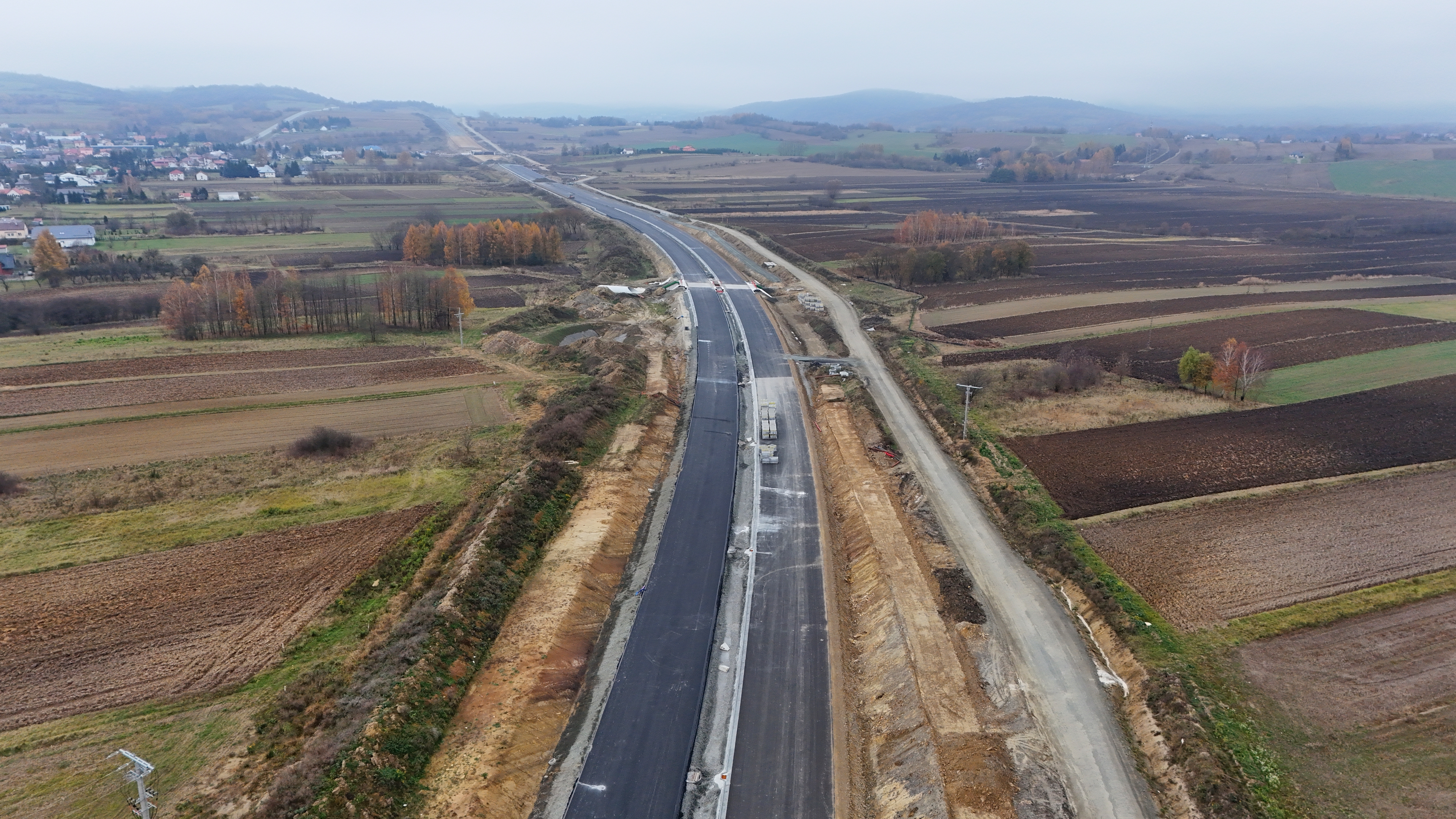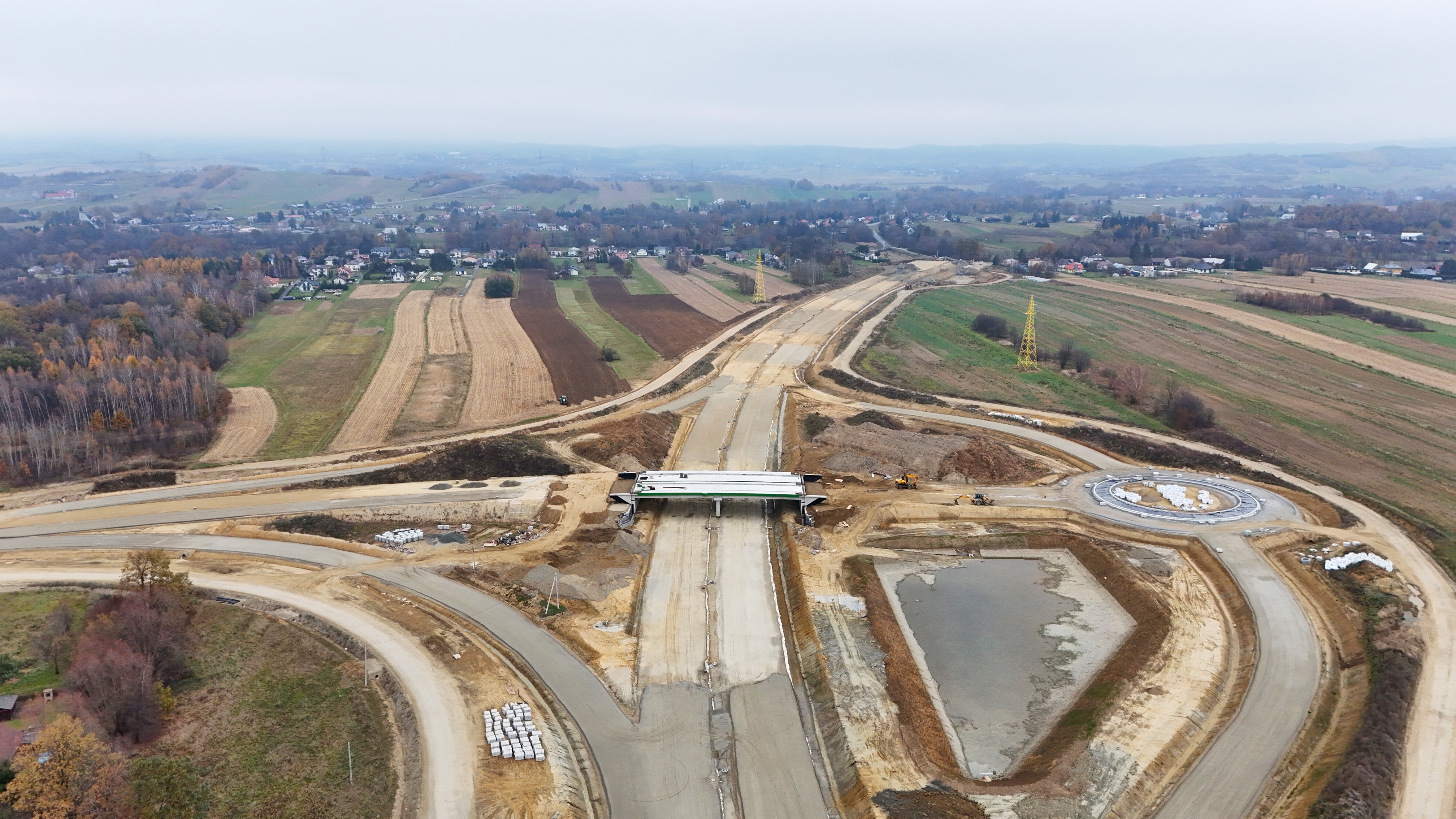 Roboty budowlane rozpoczęły się w październiku 2023 r. co oznacza, że Wykonawca ma za sobą pełen sezon roboczy. Przez ten czas w zakresie robót drogowych Wykonawca usunął z terenu budowy 652 000 m2 warstwy ziemi, wykonał 588 000 m3 wykopów i 583 000 m3 nasypów, a także 121 000 m2 ulepszonego podłoża C0,4/0,5, 138 000 m2 warstwy mrozoochronnej, 86 000 m2 podbudowy pomocniczej, 119 000 m2 podbudowy zasadniczej, 72 000 m2 podbudowy z betonu asfaltowego AC22P oraz 61 000 m2 warstwy wiążącej z betonu asfaltowego AC16W.