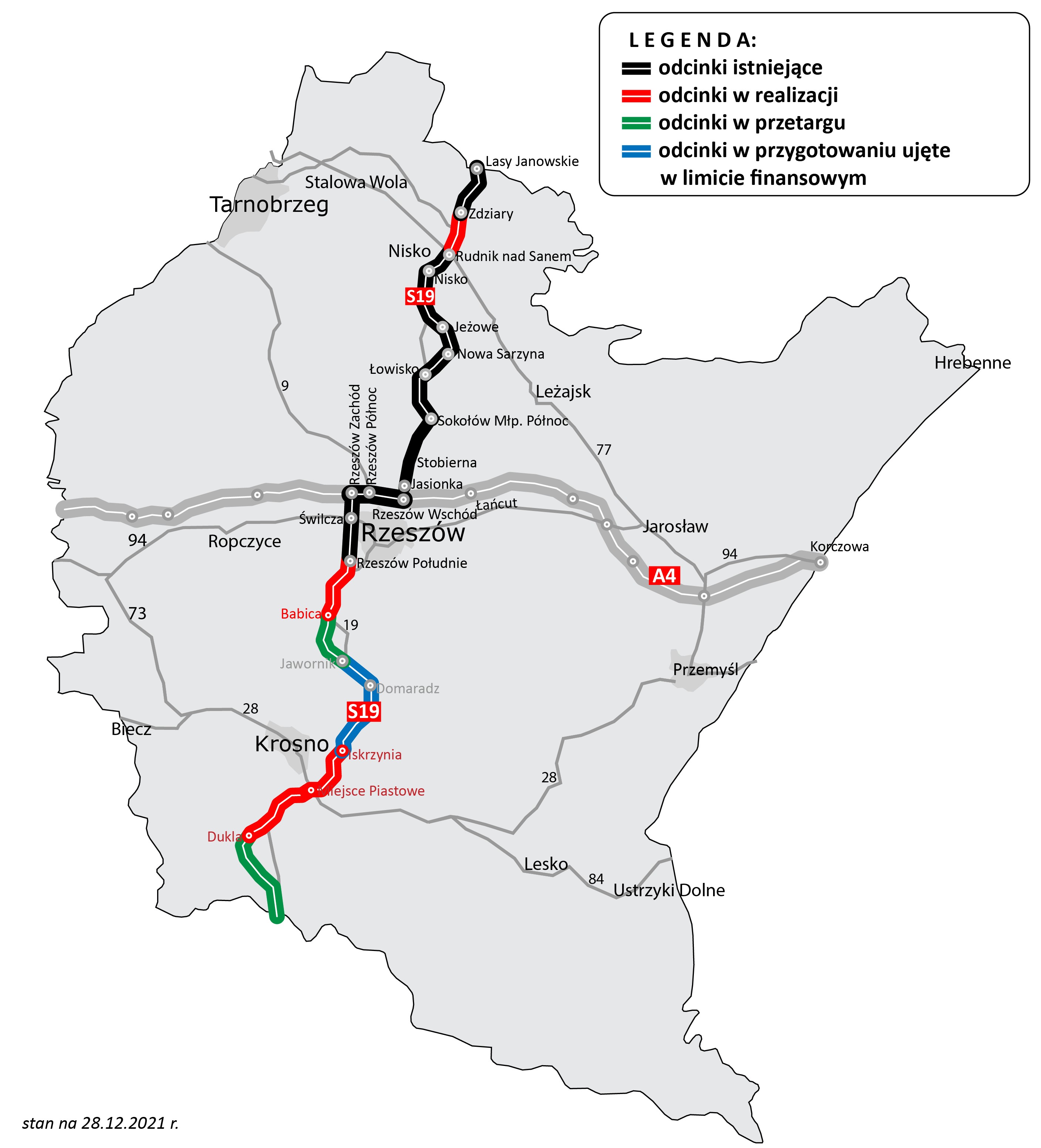 - 38,9 km - w realizacji (w budowie: Zdziary - Rudnik nad Sanem, w realizacji systemem Projektuj i buduj: Rzeszów Południe - Babica, Iskrzynia - Miejsce Piastowe i Miejsce Piastowe - Dukla),