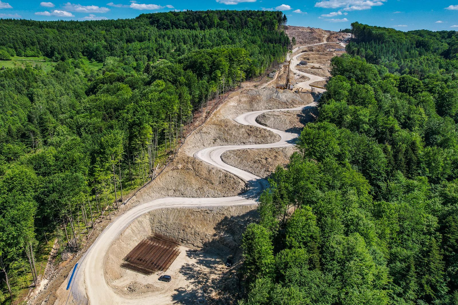 W branży drogowej trwają roboty związane z odhumusowaniem terenu. Wykonawca koncentruje się również na robotach związanych ze wzmocnieniem podłoża materacem geosyntetycznym. Kontynuuje wykopy, umocnienia skarp oraz nasypy. Budowane są też kolejne drogi technologiczne oraz drogi dojazdowe, co jest dużym wyzwaniem ze względu na specyficzne ukształtowanie terenu. Zaawansowanie robót w branży drogowej szacowane jest na poziomie ok. 14 proc.