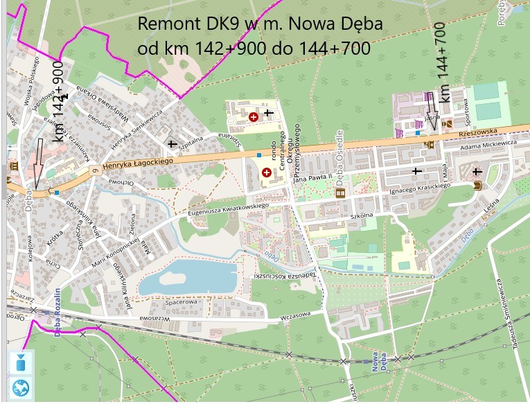 Remont nawierzchni prowadzony jest w Nowej Dębie na odcinku od skrzyżowania z ul. Wojska Polskiego do skrzyżowania z ul. 1 Maja (dworzec PKS). Roboty polegają na frezowaniu istniejącej warstwy ścieralnej, wykonaniu nowej nawierzchni oraz odtworzeniu oznakowania poziomego. Po wykonaniu nowej warstwy ścieralnej nastąpi dwutygodniowa przerwa, po której odtworzone zostanie oznakowanie poziome.