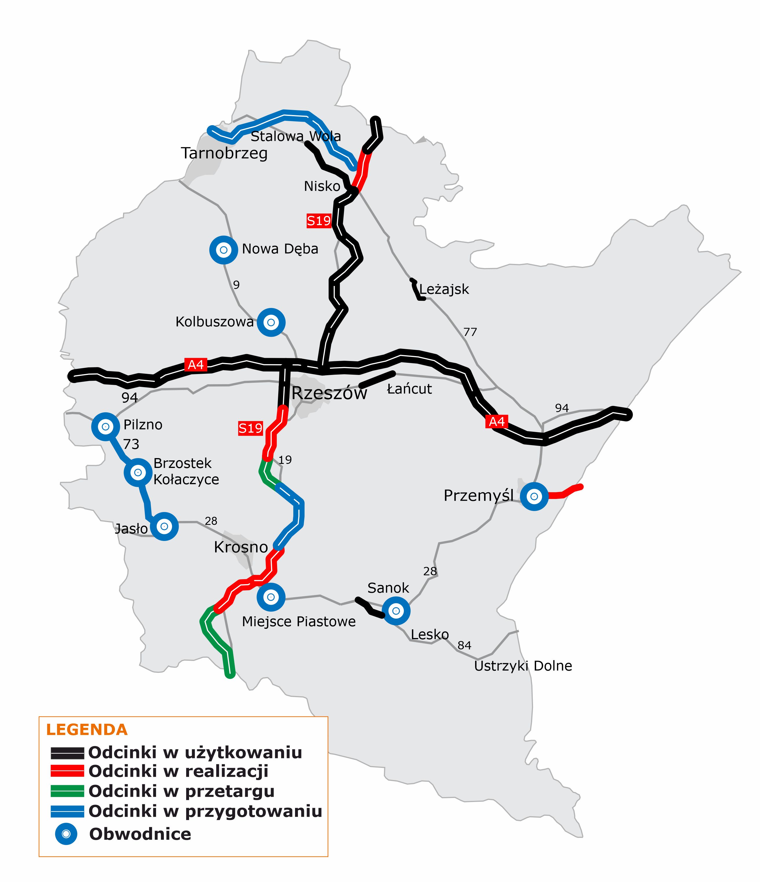 Obwodnice w budowie i przygotowaniu: obwodnica Stalowej Woli i Niska oraz Łańcuta oddane do ruchu, osiem na etapie przygotowania