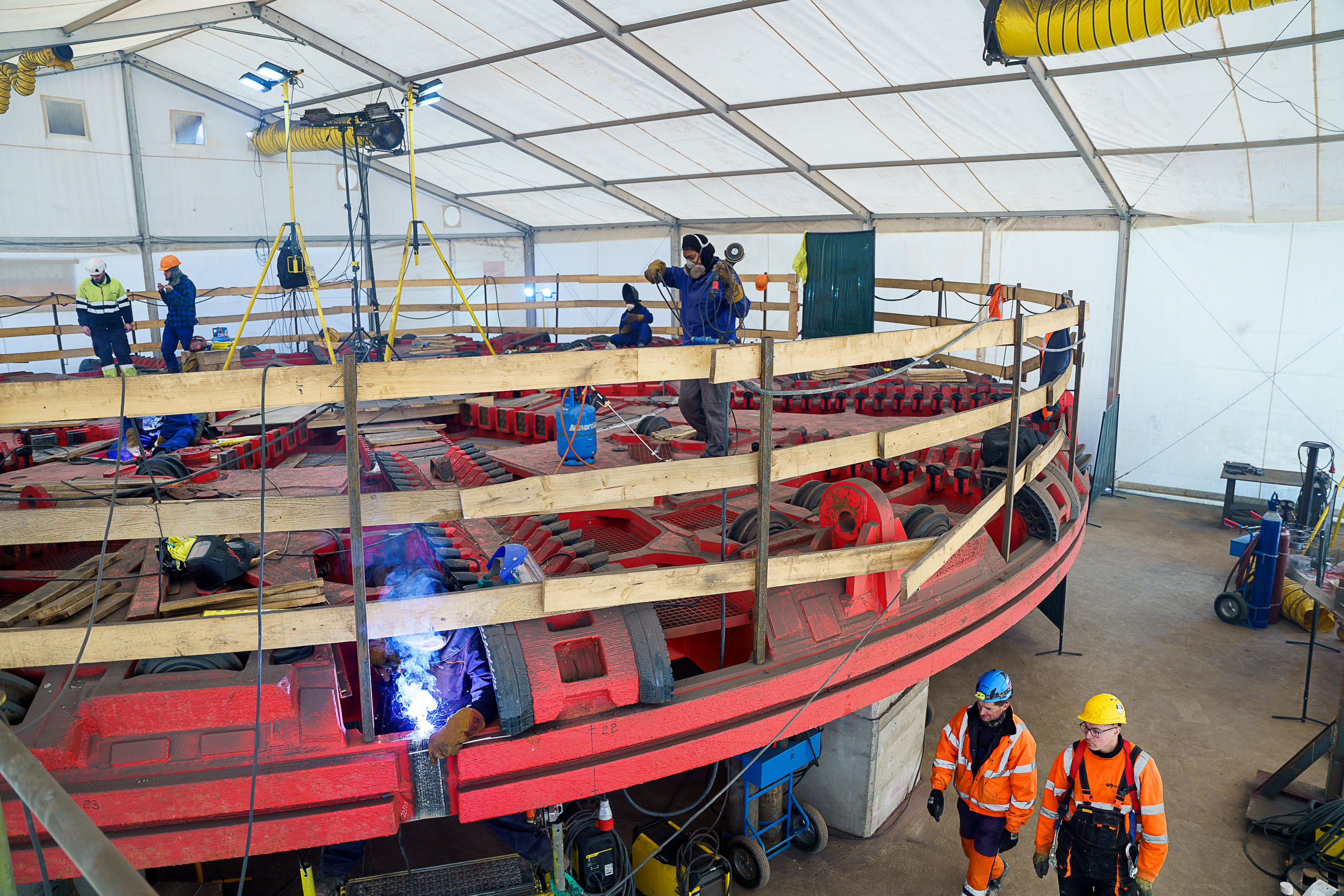Na docelowym miejscu obsługi podróżnych w Lutoryżu został zrealizowany tymczasowy zakład prefabrykacji elementów obudowy tunelu, tzw. tubingów.