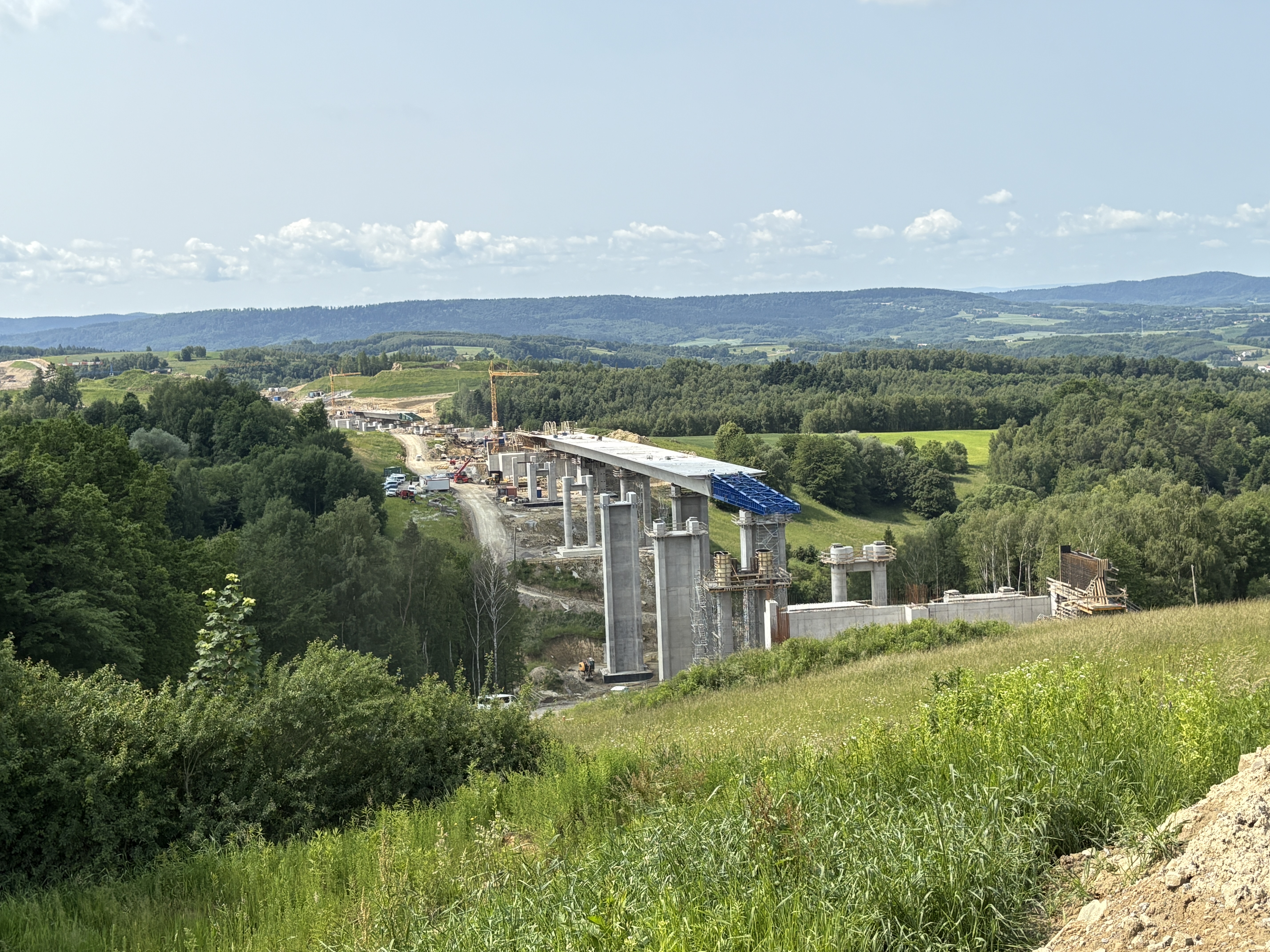 Szczególne postępy robót widać przy realizacji obiektów inżynierskich, których zaawansowanie wynosi prawie 50 proc. Projekt zakłada budowę ośmiu estakad na bardzo wysokich podporach, w tym najwyższą budowaną obecnie w Polsce estakadę ES-26 usytuowaną pomiędzy miejscowościami Żarnowa i Godowa o długości ok. 1,15 km i filarach o wysokości ok. 80 m.