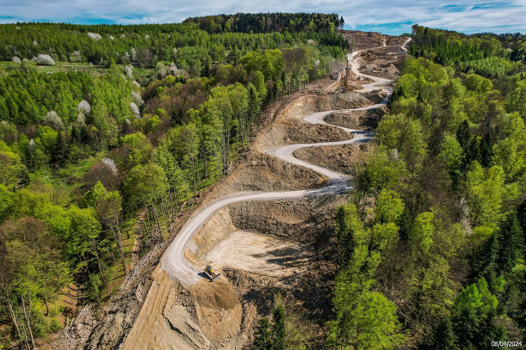 Najbardziej spektakularne rejony prac to właśnie miejsca, gdzie powstają estakady ES-22, ES-24 i mierząca w najwyższym miejscu 80 m wysokości ES-26. Aktualnie wykonawca buduje drogi dojazdowe do podpór. Ze względu na ukształtowanie tereny drogi te przypominają serpentyny. Różnica poziomów tych dróg przy estakadzie ES-26 sięga 120 metrów. Tak duże utrudnienia terenowe wymuszają na dostawcach mieszanki betonu cementowego zupełnie innej logistyki niż zazwyczaj. Spadki dróg technologicznych sięgające 15% powodują, że betonowozy (tzw. gruszki) nie mogą transportować pełnych ładunków. Ładowność „gruszek” nie przekracza 80% swoich nominalnych możliwości.