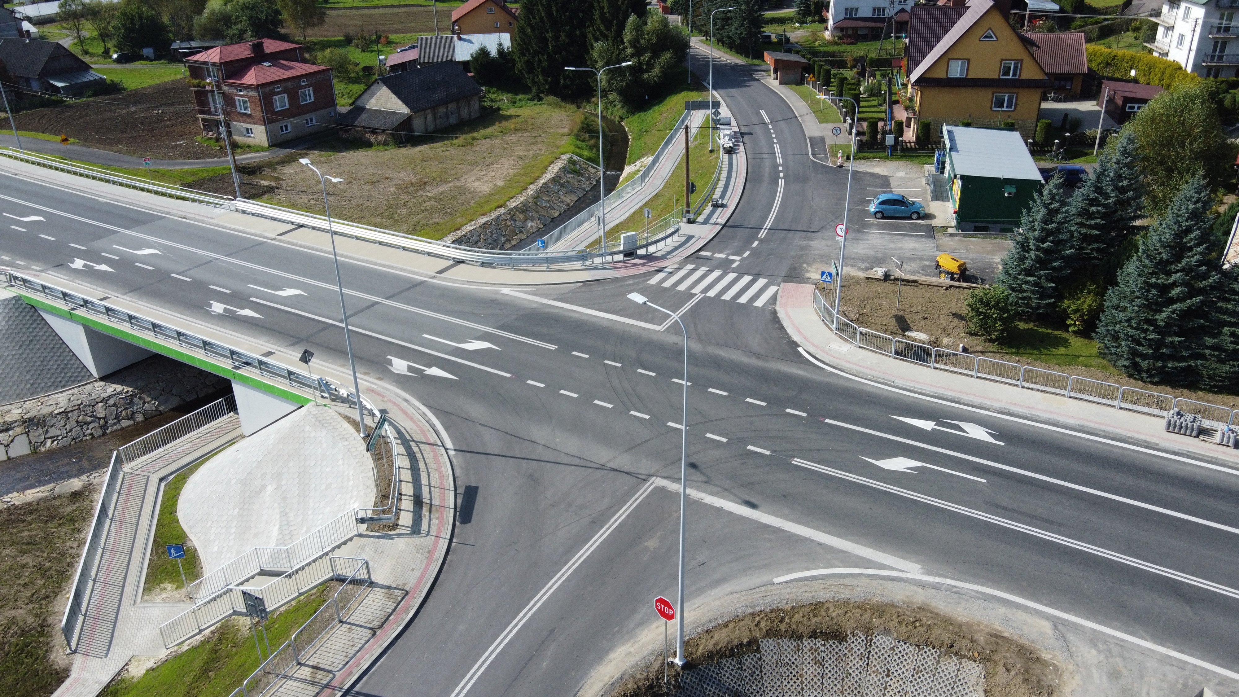 W 2020 roku wykonano objazd tymczasowy, rozebrano istniejący most i realizowano budowę nowego obiektu w zakresie wykonania fundamentów i podpór oraz budowę drogi stanowiącej dojazdy do mostu. W roku 2021 kontynuowano roboty budowlane przy moście stałym i dojazdach. Po wykonaniu nowego mostu rozebrano most tymczasowy. Wykonano także m.in. roboty wykończeniowe i przyobiektowe wraz z rekultywacją terenu oraz rozbudową skrzyżowania.