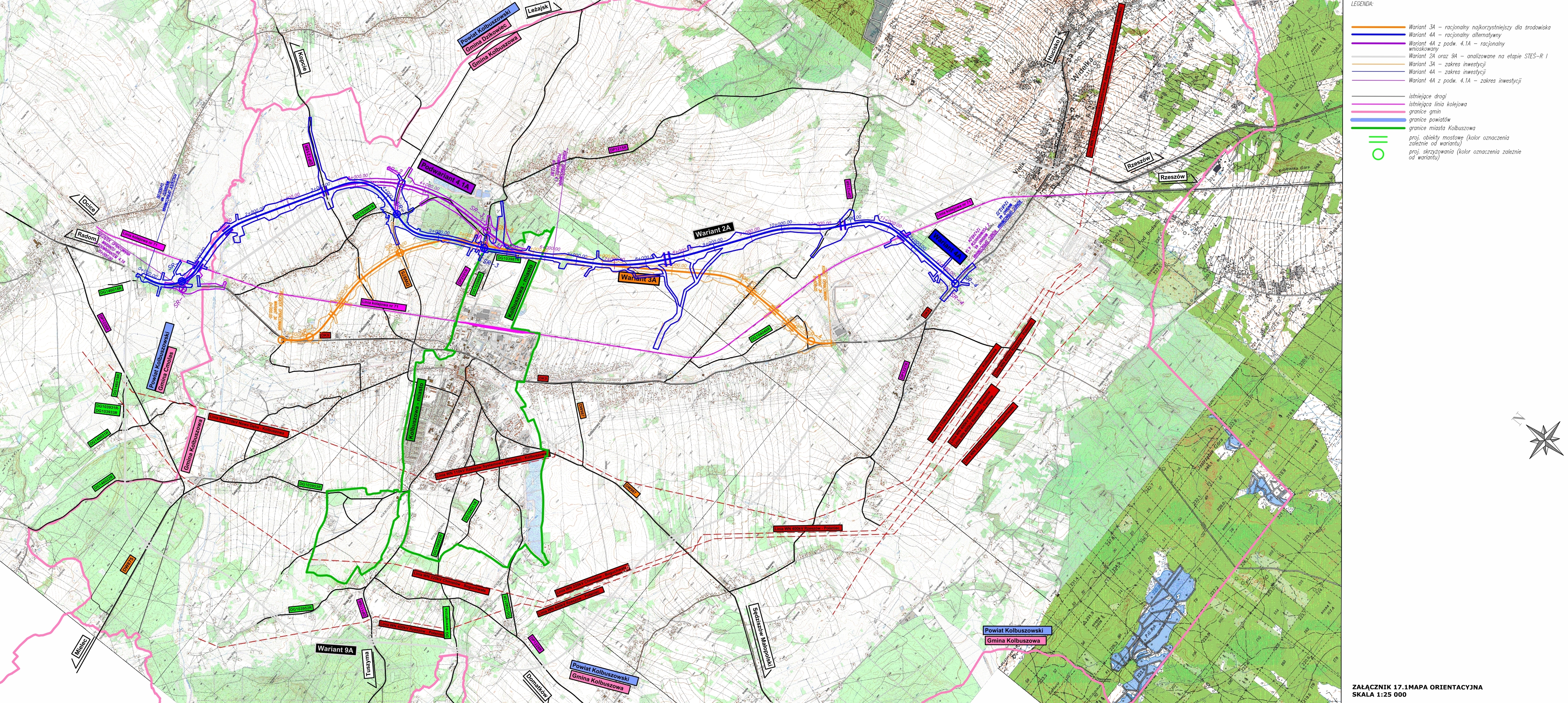 8 listopada 2024 r. do Regionalnej Dyrekcji Ochrony Środowiska w Rzeszowie złożyliśmy wniosek o wydanie decyzji środowiskowej (DŚU). Jako wariant preferowany wskazaliśmy wariant 4A z podwariantem 4.1A (przebieg poniżej). RDOŚ przeprowadził konsultacje społeczne, w trakcie których można było zgłaszać uwagi i wnioski dotyczące przebiegu planowanej trasy.