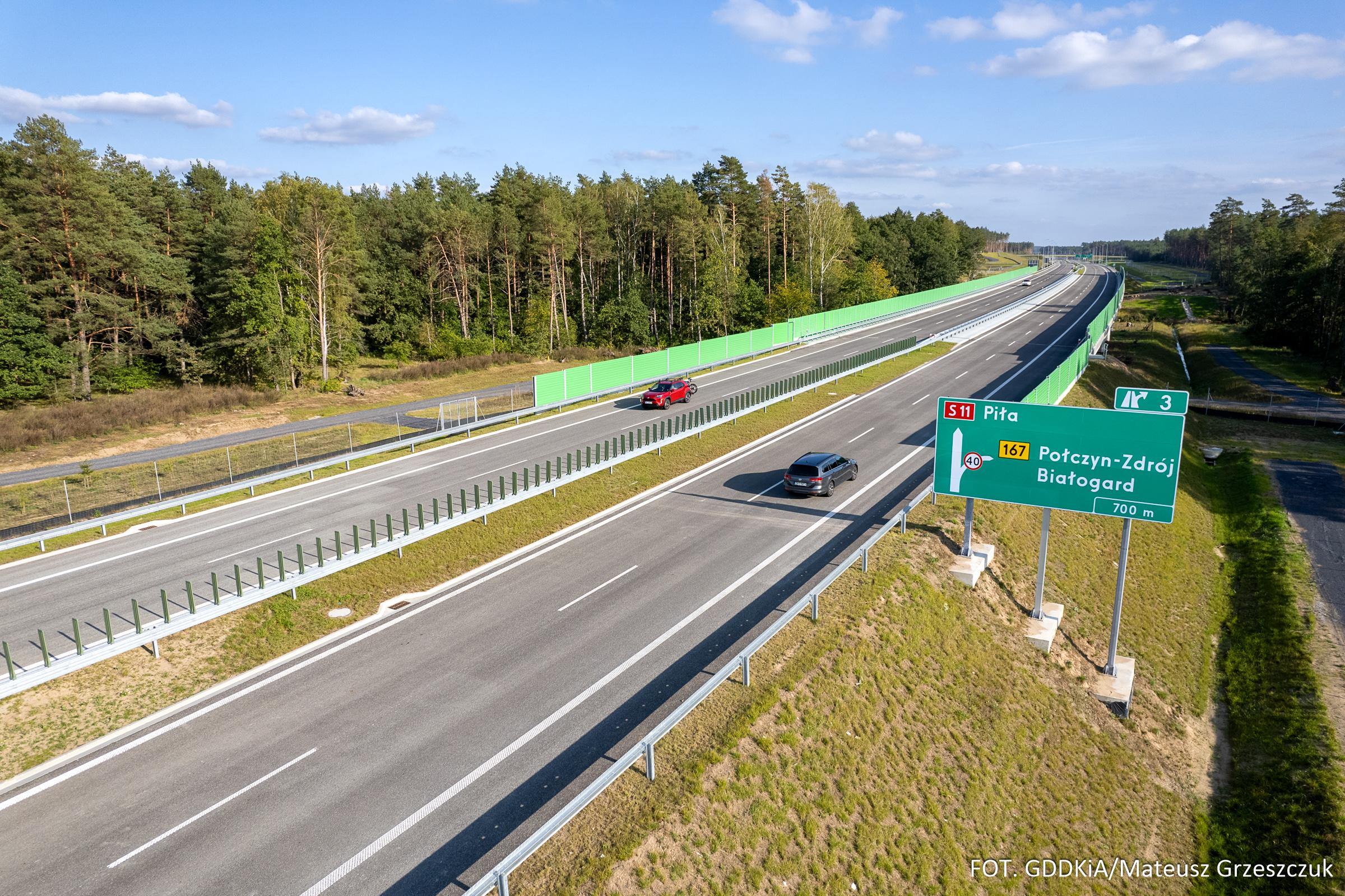 Kolejną inwestycją pod względem wartości, jak i długości po drodze S6 była S11 od Koszalina do Bobolic. Ta blisko 48-kilometrowa droga została oddana do ruchu we wrześniu ubiegłego roku. Trasa była podzielona na trzy odcinki realizacyjne i obecnie ma zupełnie nowy przebieg – łączy się z drogą S6 na węźle Bielice, położonym na zachód od Koszalina.