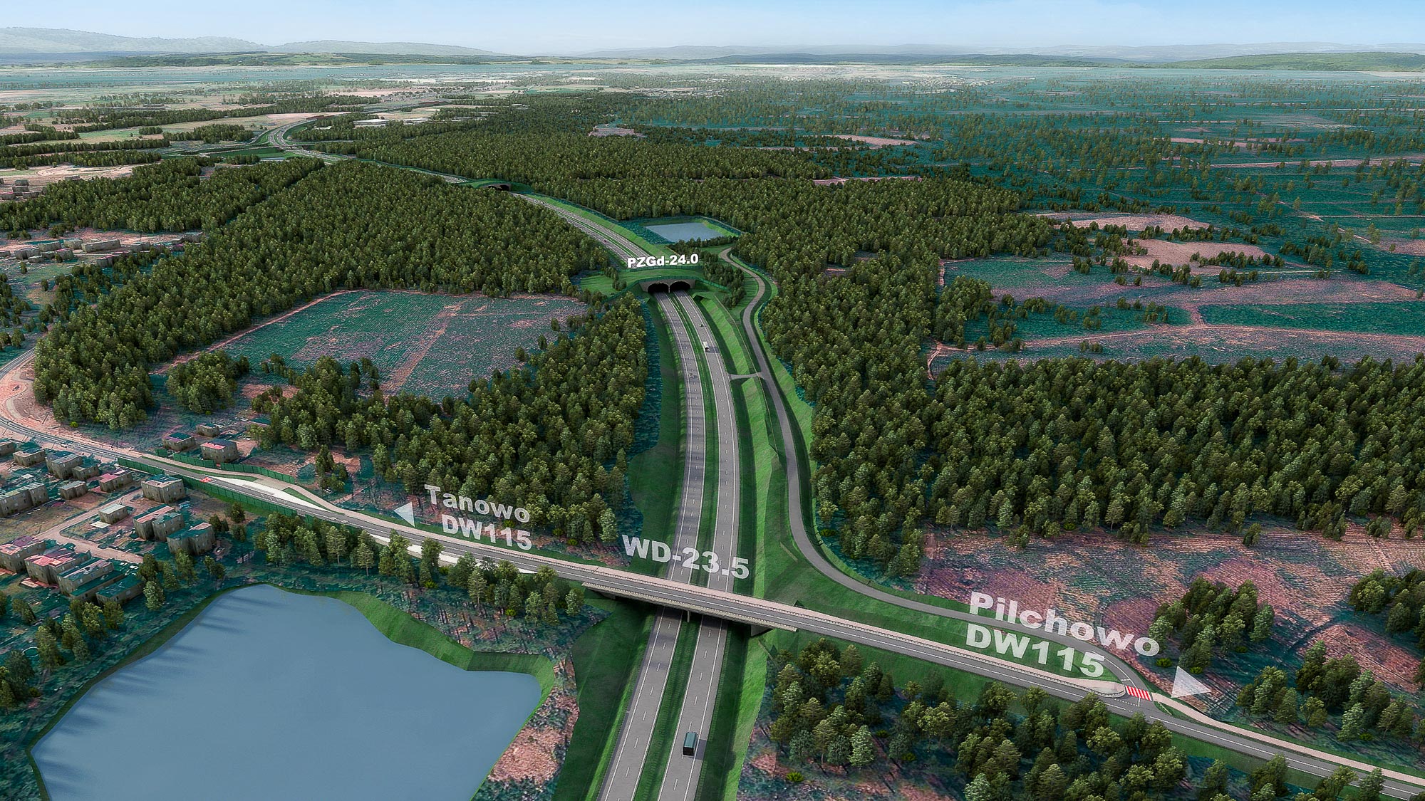 W ramach tego odcinka powstaną dwa węzły drogowe i 14 obiektów mostowych, w tym cztery górne przejścia dla zwierząt i pięć dolnych.