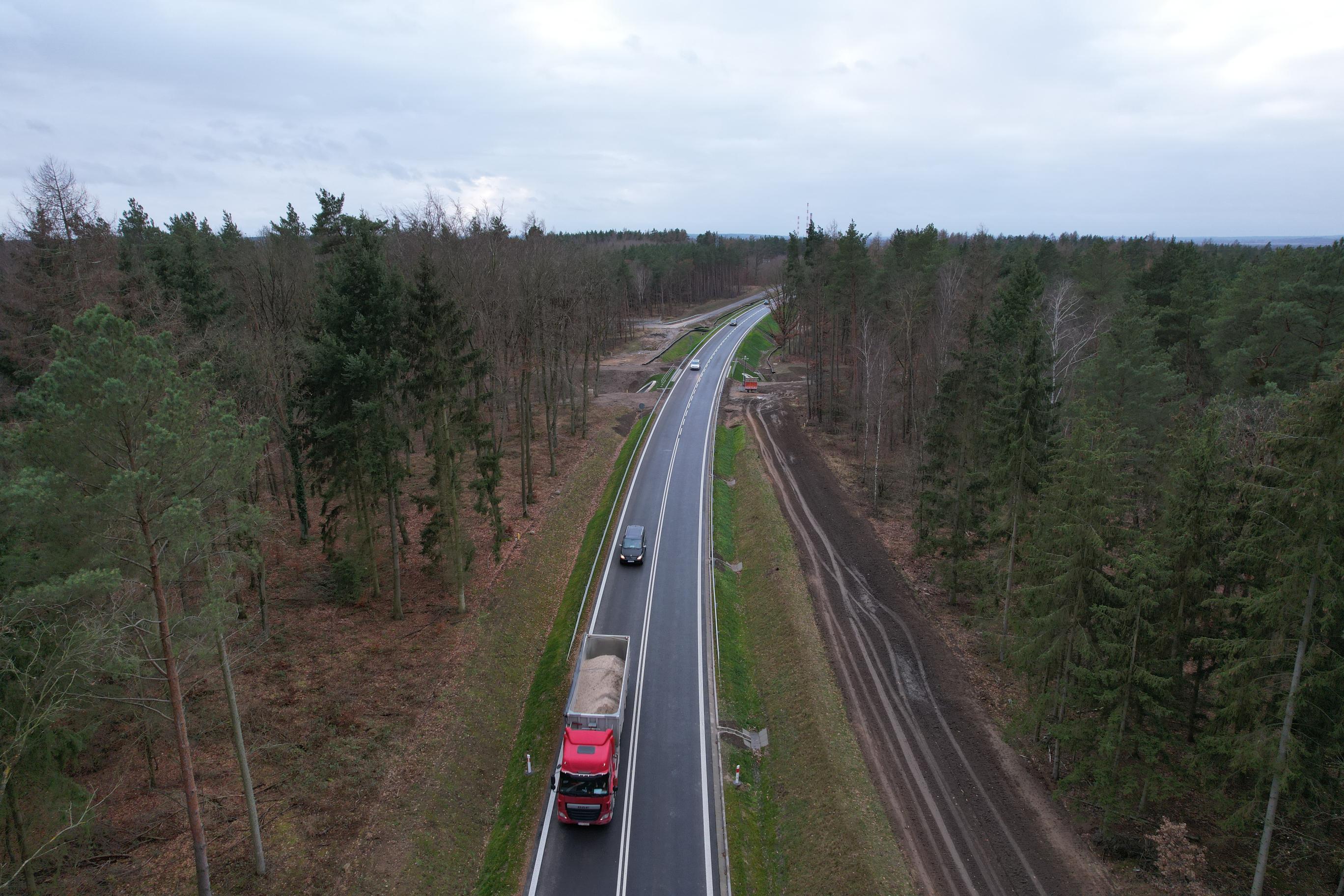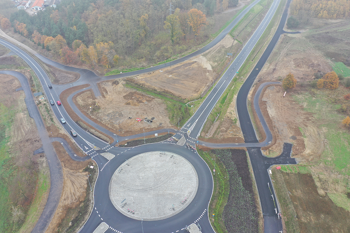 W 2020 roku ruszył przetarg na realizację. Umowę w formule Projektuj i buduj o wartości 74,77 mln zł podpisaliśmy w kwietniu 2021 roku z konsorcjum, którego liderem jest firma Roverpol. Wykonawca opracował projekty budowlane i uzyskał decyzję o zezwoleniu na realizację inwestycji drogowej (ZRID), co umożliwiło rozpoczęcie we wrześniu 2022 roku budowy drogi. Prace budowlane były prowadzone zgodnie z terminami kontraktowymi, co umożliwiło w ostatnich tygodniach dokonanie odbiorów i uzyskanie wszystkich niezbędnych pozwoleń na użytkowanie trasy.
