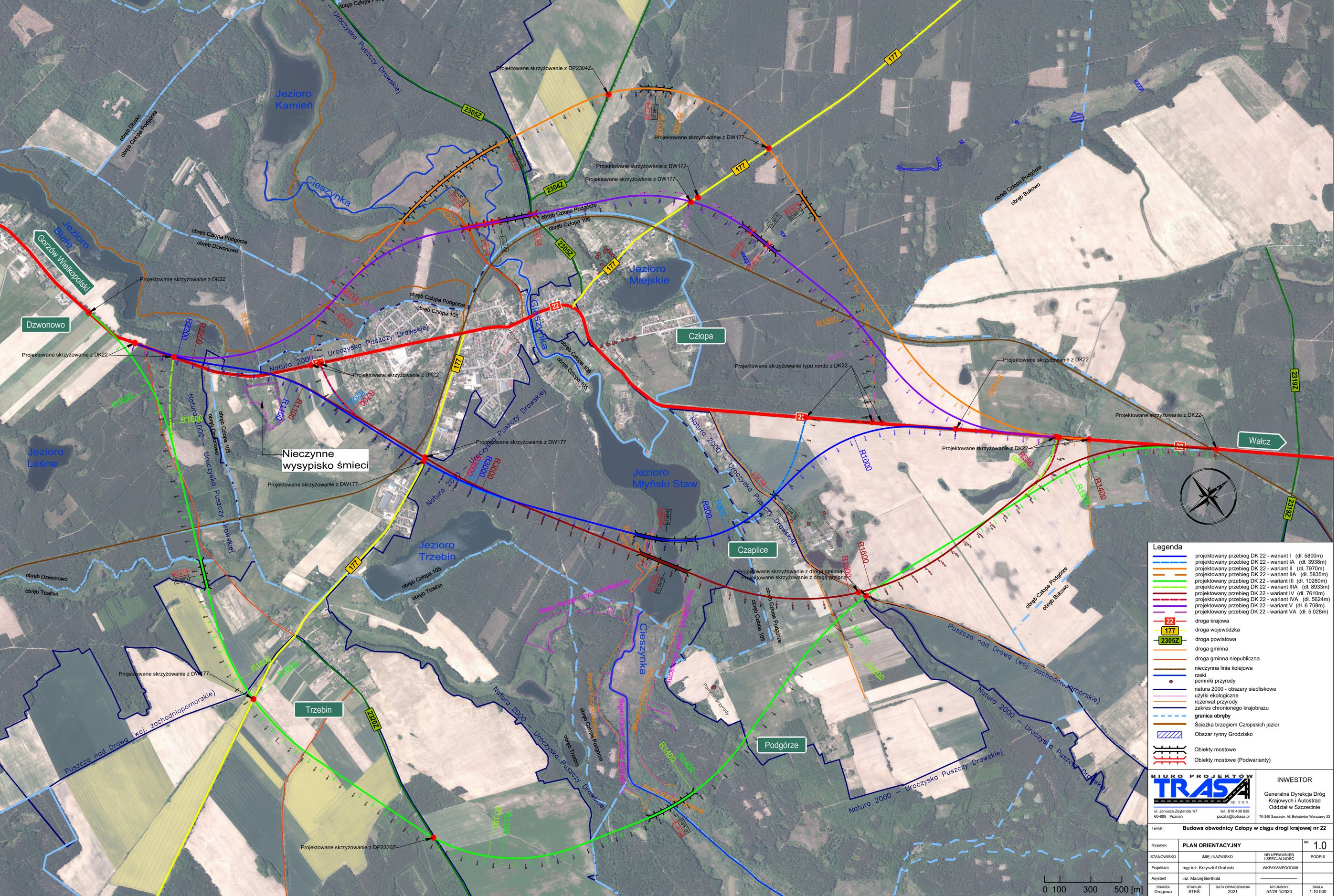 Umowa na opracowanie dokumentacji dla obwodnicy Człopy została podpisana w czerwcu 2020 roku. Firma projektowa Trasa z Poznania opracowała dokumentację studialną wraz z raportem oddziaływania na środowisko. Do przygotowania dokumentacji niezbędna jest inwentaryzacja przyrodnicza, dlatego specjaliści sprawdzili dokładnie w terenie, jakie siedliska flory i fauny występują w miejscu planowanej inwestycji. Zostały wykonane analizy techniczne i ekonomiczne dla każdego z wariantów.