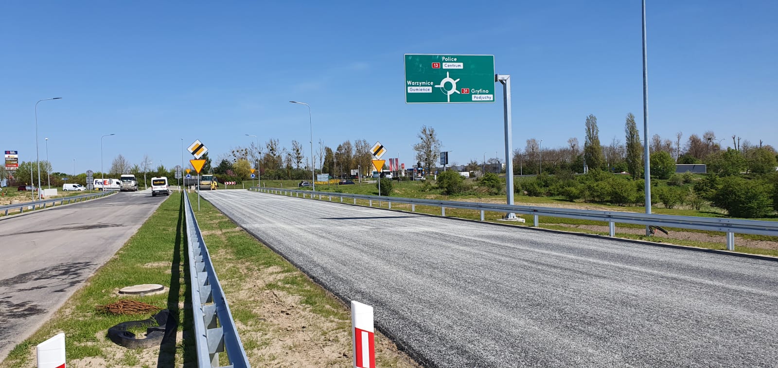 Wykonano już kompletną nawierzchnię na jezdniach głównych. Prowadzone są jeszcze roboty przy rondzie, które połączy obwodnicę z obecnym przebiegiem DK13. Wykonywane jest oznakowanie poziome, ogrodzenie drogi, bariery energochłonne i roboty wykończeniowe. W III kwartale tego roku planujemy zakończyć inwestycję i udostępnić drogę do ruchu.