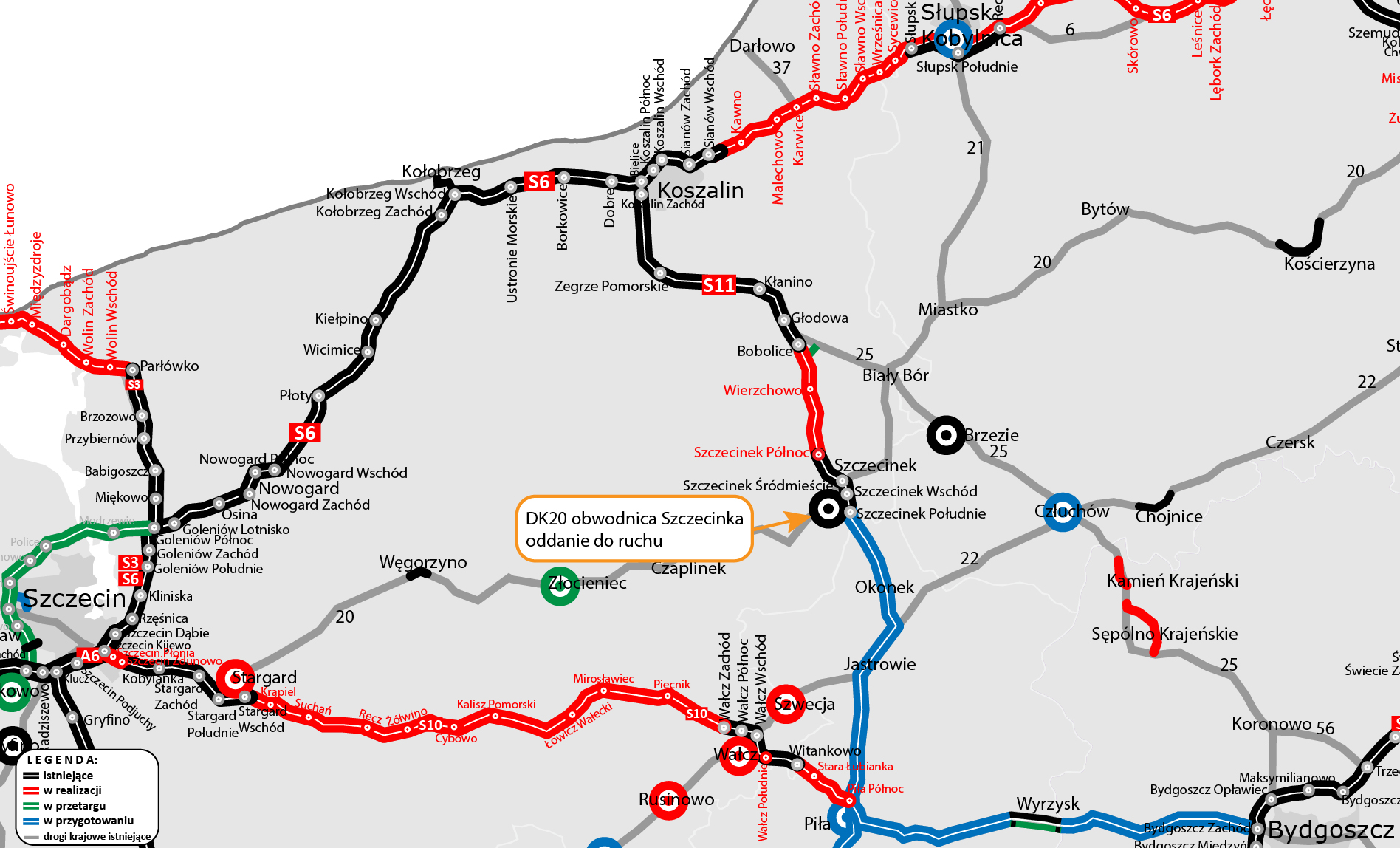 Kierowcy mogą już ominąć Szczecinek, jadąc drogą krajową nr 20. Obwodnica o długości 4,3 km przebiega na południe od miasta i poprzez nowy węzeł Szczecinek Południe łączy się z drogą ekspresową S11. Dzięki tej trasie przez Szczecinek nie przebiega już żadna droga krajowa. Liczba pojazdów w mieście, w tym przede wszystkim ciężarowych, zmniejszy się, co poprawi warunki życia mieszkańców, a ruch drogowy będzie mógł odbywać się sprawniej nową trasą.