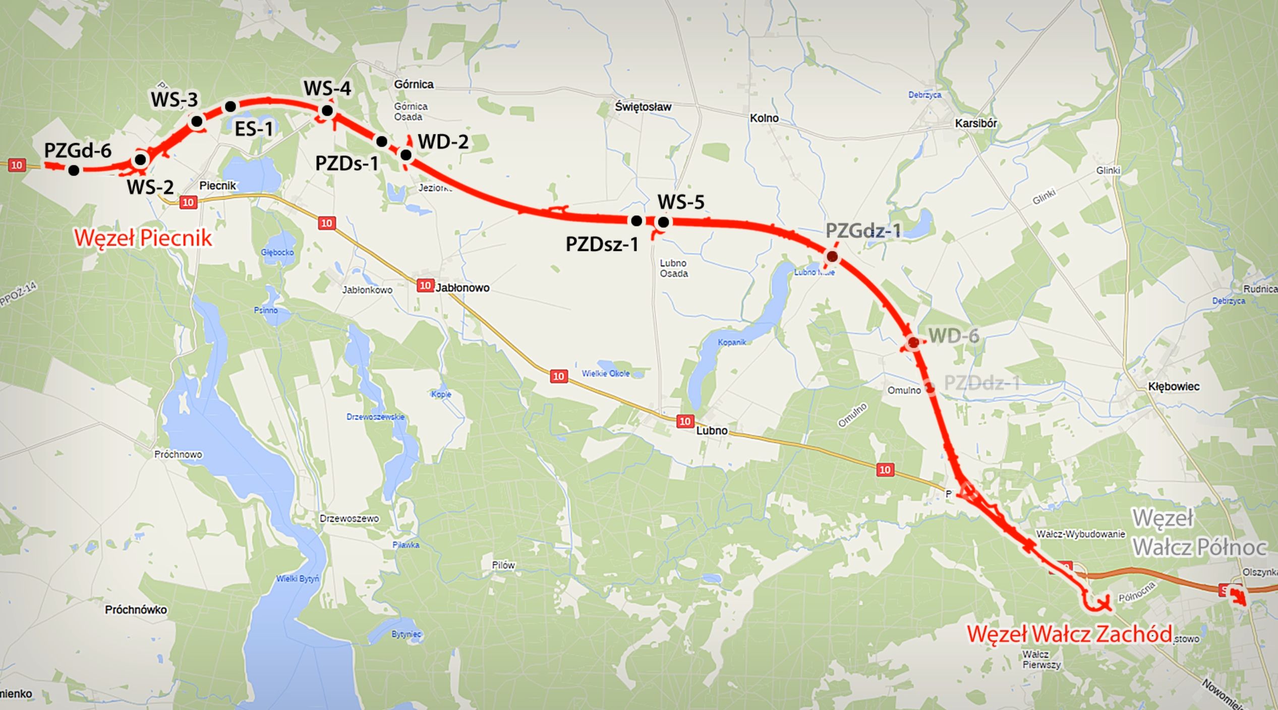 Odcinek rozpocznie się przed węzłem drogowym Piecnik i za nim trasa odejdzie na północ od obecnego przebiegu DK10 i będzie biegła nowym śladem, omijając miejscowości Jabłonowo i Lubno. Na wschód od Piławy wejdzie w przebieg obecnej DK10, włączając się do istniejącego węzła Wałcz Zachód na obwodnicy Wałcza w ciągu S10.