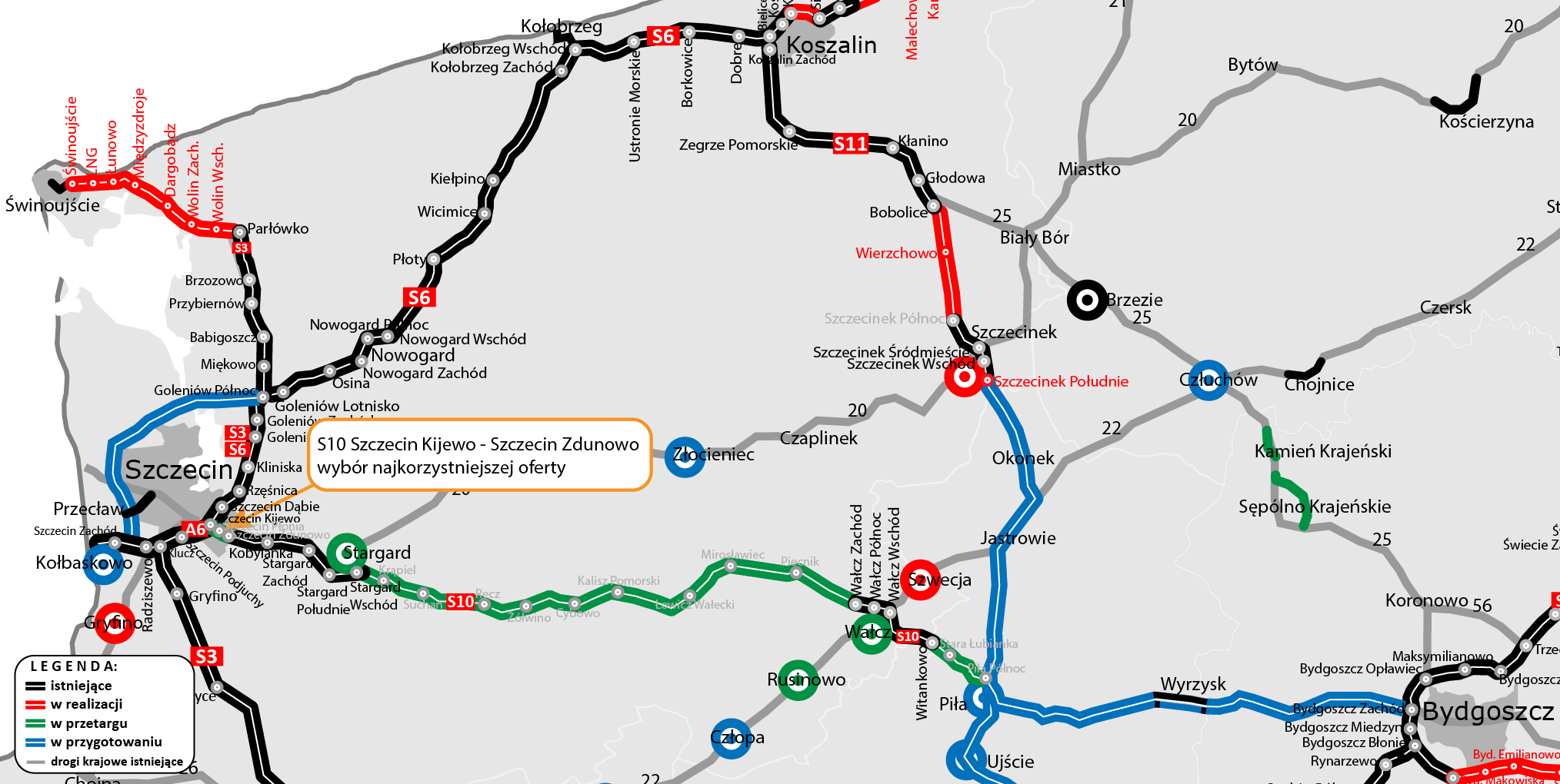 Postępowanie na wyłonienie wykonawcy dla odcinka od węzła Szczecin Kijewo do Zdunowa i funkcjonującego już dalszego odcinka drogi ekspresowej S10, ogłosiliśmy pod koniec września ubiegłego roku.