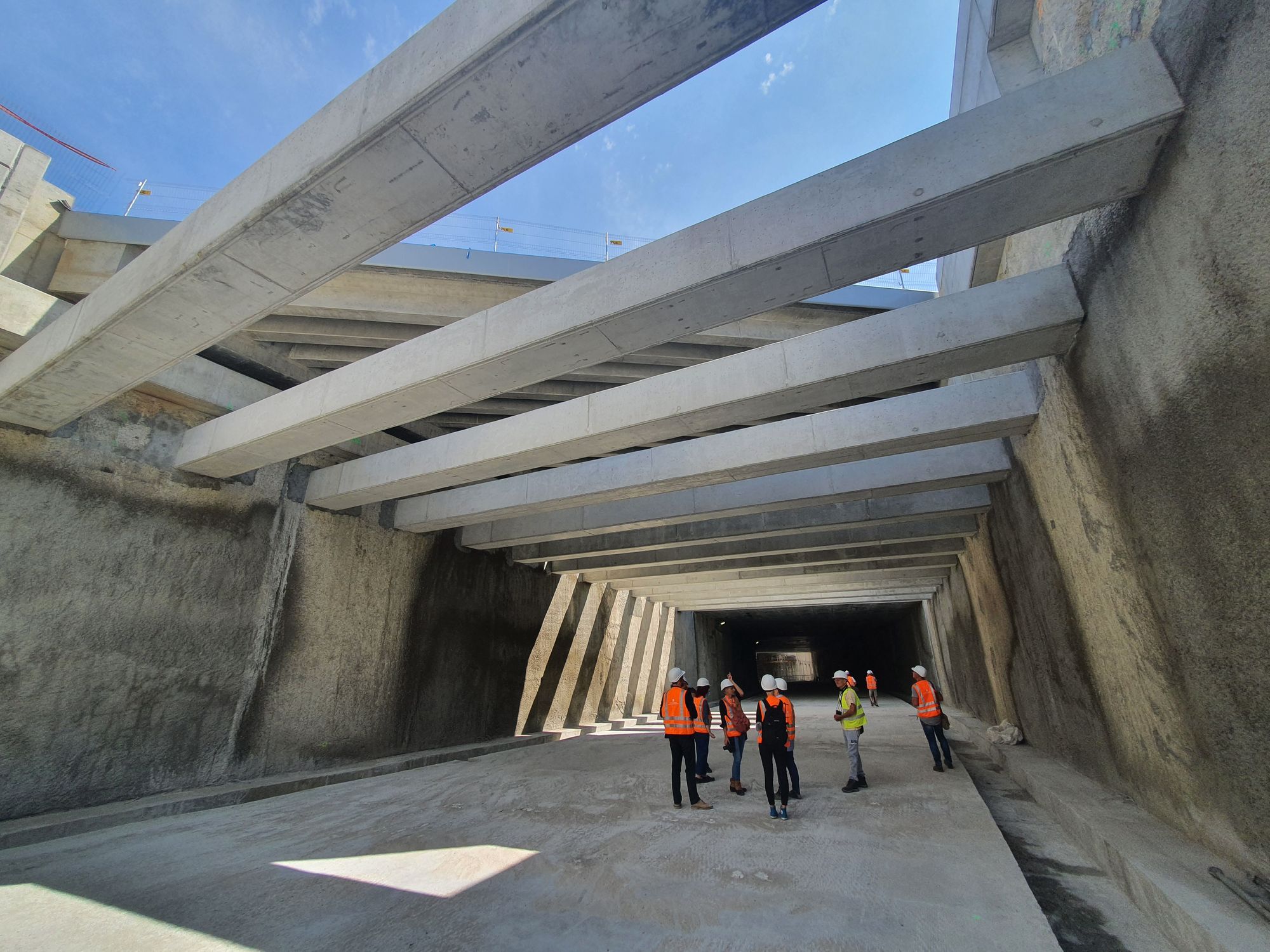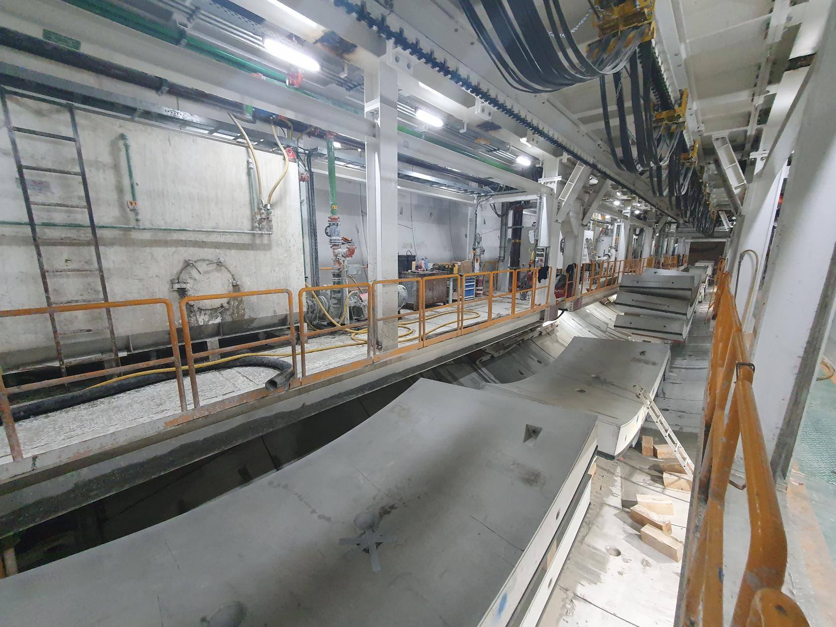 Maszyna TBM zarówno drąży tunel, usuwając równocześnie urobek, jak i wykonuje obudowę tunelu z prefabrykowanych elementów – tubingów. Na każdy pierścień tunelu składa się osiem takich elementów, które powstawały w specjalnie zbudowanym zakładzie prefabrykacji. Wszystkie 6280 tubingów już wykonano i większość z nich wykorzystano do wykonania obudowy tunelu. Na półmetku drążenia osiągnięto najniższy punkt tunelu, a obecnie głębokość, na której prowadzone są prace stale się zmniejsza. Maszyna TBM kieruje się ku komorze odbiorczej, od której rozpocznie się wjazd do tunelu od strony wyspy Wolin.