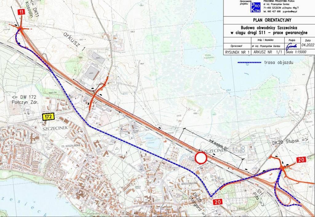 Na najbliższy piątek, 12 stycznia, zaplanowane jest całkowite zamknięcie fragmentu drogi ekspresowej S11 stanowiącej obwodnicę tego miasta. Wyłączony z ruchu zostanie odcinek od ronda na skrzyżowaniu DK11 z drogą wojewódzką nr 172 do węzła Szczecinek Śródmieście. Tymczasowy objazd będzie prowadził przez miasto, z wykorzystaniem DK20 ulicą Słupską oraz dawnego przebiegu DK11 ulicami Narutowicza i Koszalińską. Przywrócenie ruchu na obwodnicy zaplanowano na przełomie czerwca/lipca 2024 r.