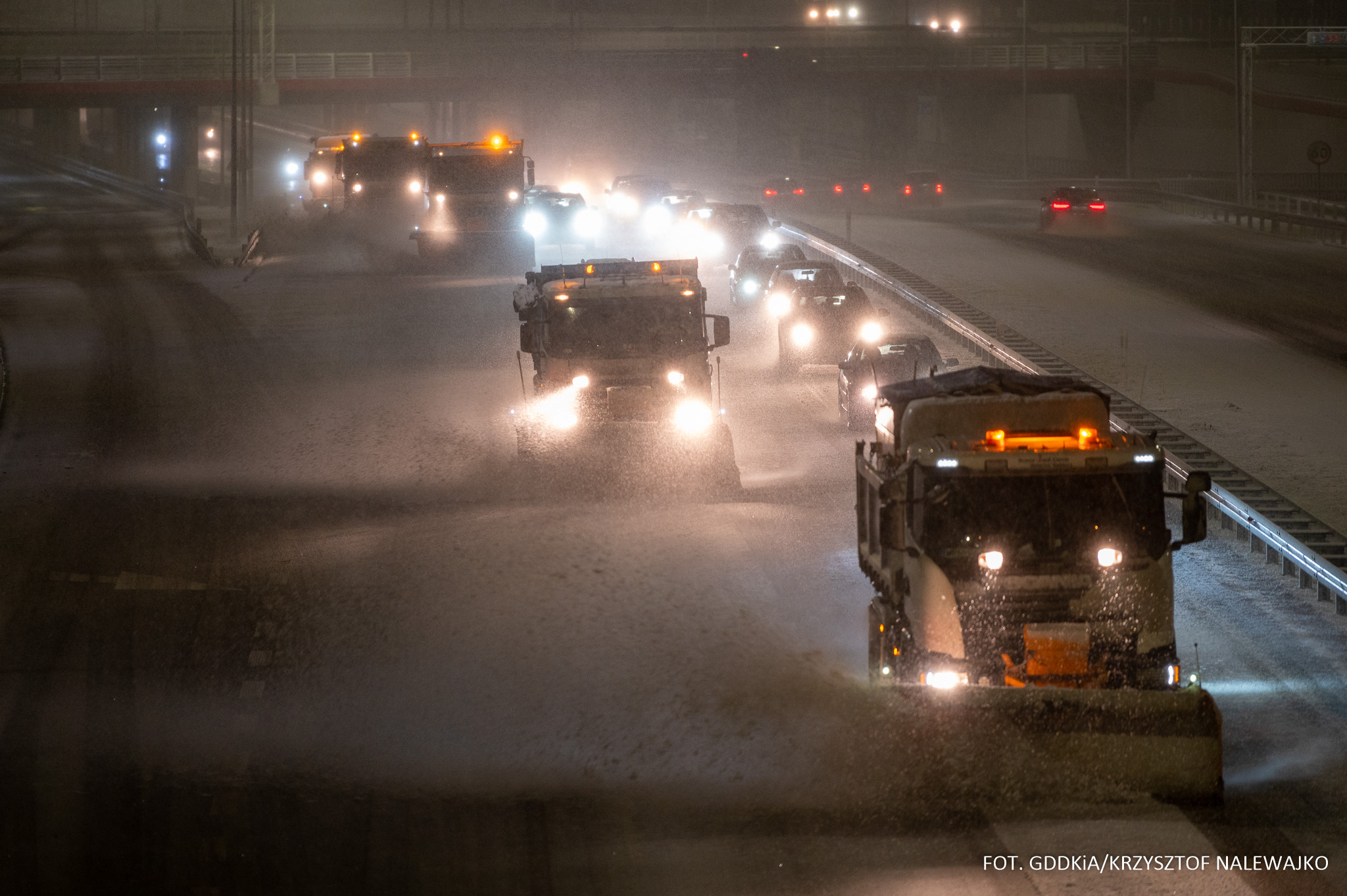 Zadaniem operatorów obsługujących sprzęt do zimowego utrzymania dróg jest zapewnienie przejezdności. Urządzenia te są szerokie – niektóre zajmują cały pas drogi oraz poruszają się wolno, z prędkością ok. 40 km/h. Za sobą pozostawiają jednak odśnieżoną drogę, bezpieczną i umożliwiają płynny ruch. Dlatego warto je przepuścić. Mimo, że służby drogowe posługują się żółtymi światłami sygnalizacyjnymi, a nie jak Policja czy służba zdrowia – niebieskimi, pełnią rolę zbliżoną do tej przypisanej służbom porządkowym i ratowniczym.