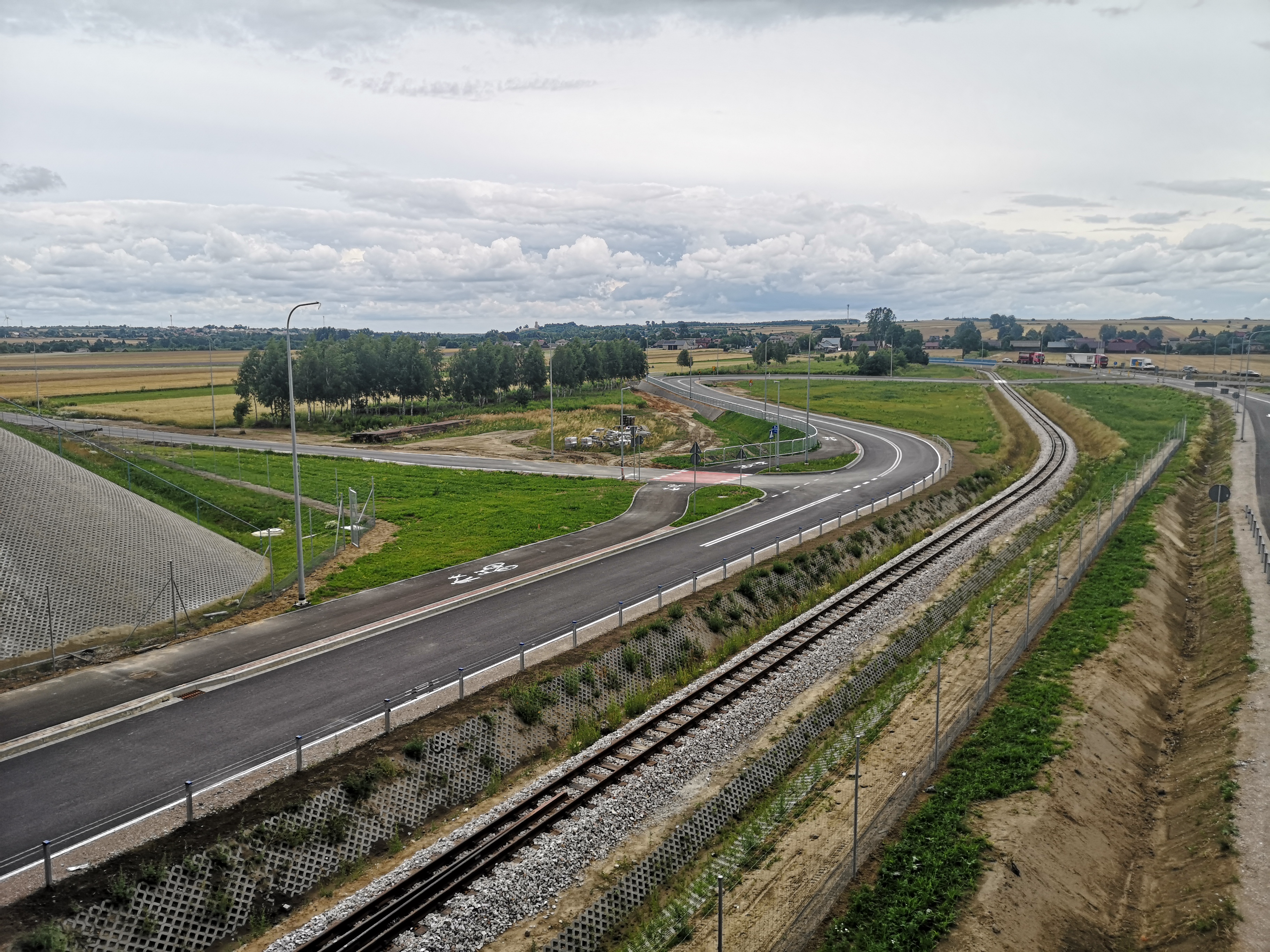 W zakresie robót drogowych ułożono już nawierzchnię betonową na ciągu głównym, a na drogach lokalnych układana jest nawierzchnia bitumicznej. Prowadzone są również prace związane z przebudową DK92. Po ostatniej zmianie organizacji ruchu rozebrano starą nawierzchnięi układane są warstwy konstrukcji pod nową jezdnię. Wzdłuż trasy powstają ekrany dźwiękochłonne. Prowadzone są prace branżowe związane z budową kanalizacji deszczowej, kanału technologicznego, oświetlenia, urządzeń melioracyjnych.