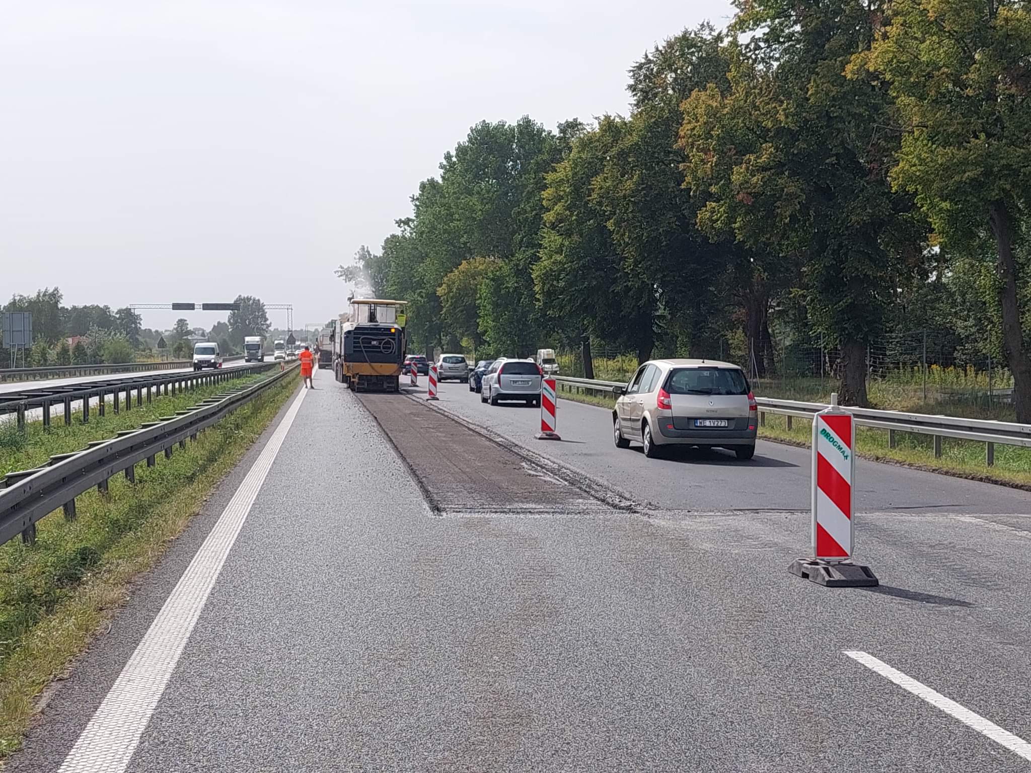 Do czwartku (25.08) potrwają prace na jezdni w kierunku Warszawy. Zamknięty dla ruchu będzie pas, na którym są realizowane roboty. Po sfrezowaniu nawierzchni, ułożeniu siatki wzmacniającej oraz warstwy wiążącej, ruch zostanie dopuszczony całą szerokością jezdni. Po wykonaniu badań i uzyskaniu pozytywnych wyników, wykonane zostanie oznakowanie poziome. Termin jest uzależniony od przeprowadzenia badań jakości.