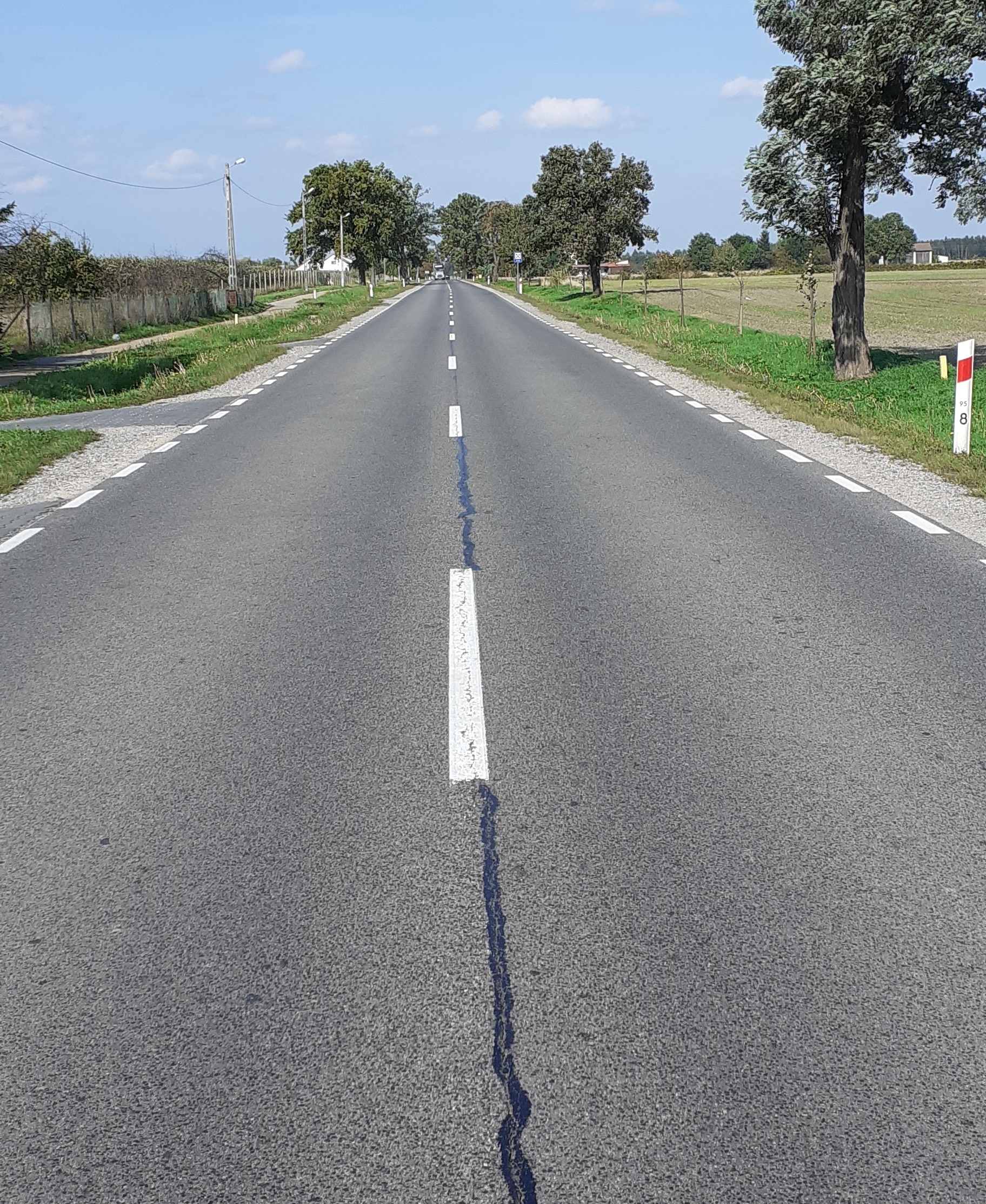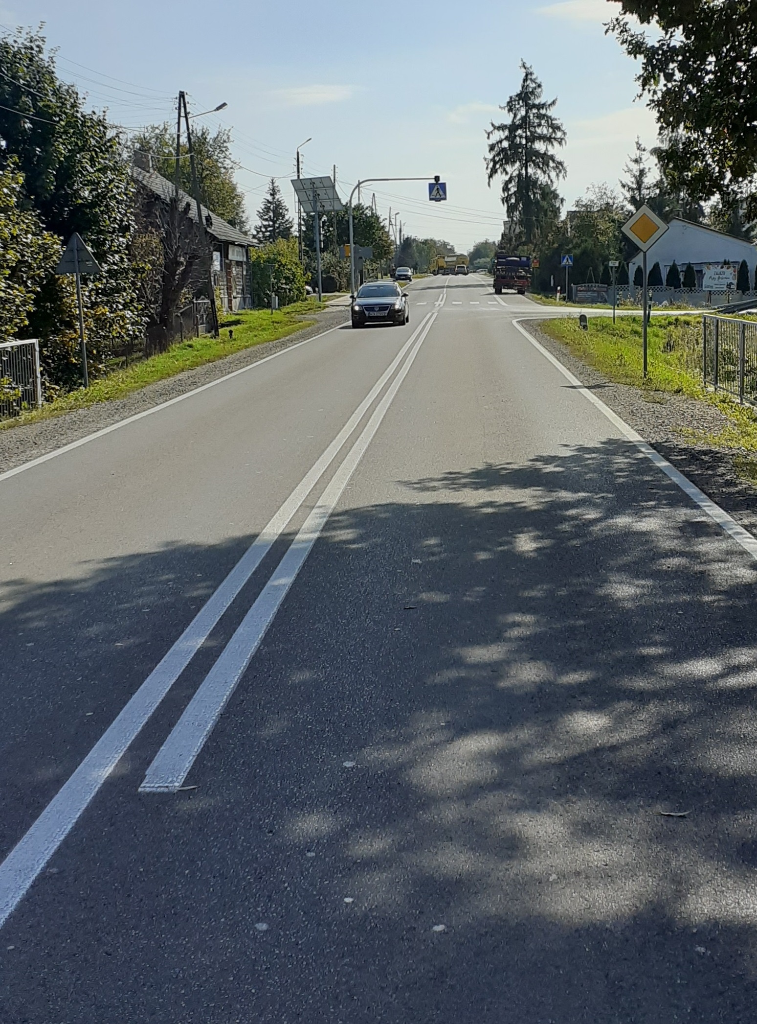 Jedna jezdnia, dwa pasy ruchu i dodatkowo pas wielofunkcyjny