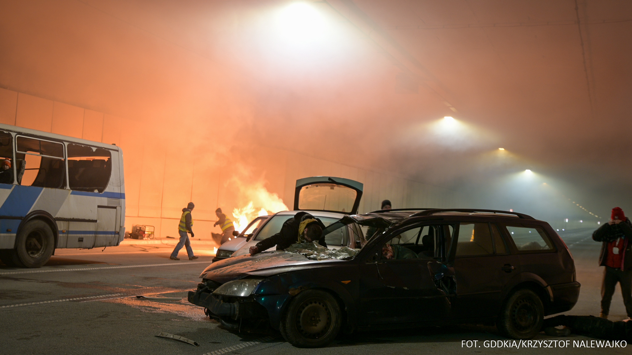 W niemal rzeczywistych warunkach sprawdziliśmy systemy powiadamiania właściwych organów o zdarzeniu, a służby przeprowadziły akcję ratowniczą połączoną z ewakuacją z tunelu. Służby drogowe przećwiczyły nie tylko wdrażanie scenariuszy alarmowych, ale także doprowadzenie tunelu do stanu umożliwiającego wznowienie ruchu.