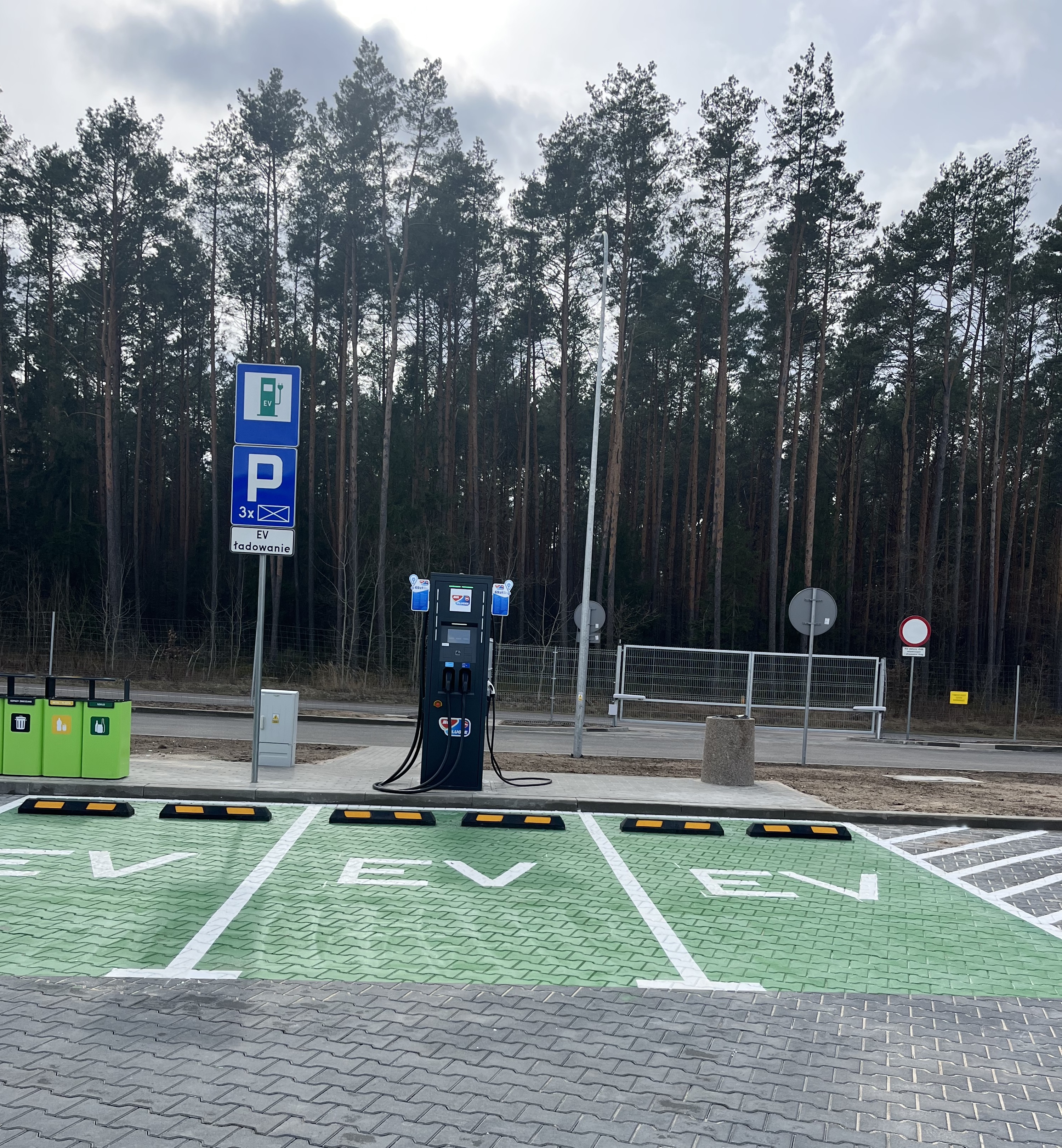 Obiekt wyposażony jest w parking dla samochodów ciężarowych i osobowych z możliwością ładowania elektrycznych samochodów osobowych (3 stanowiska), budynek toalet, zadaszone miejsca wypoczynkowe, plac zabaw. Dostępna jest też stacja paliw z bistro.