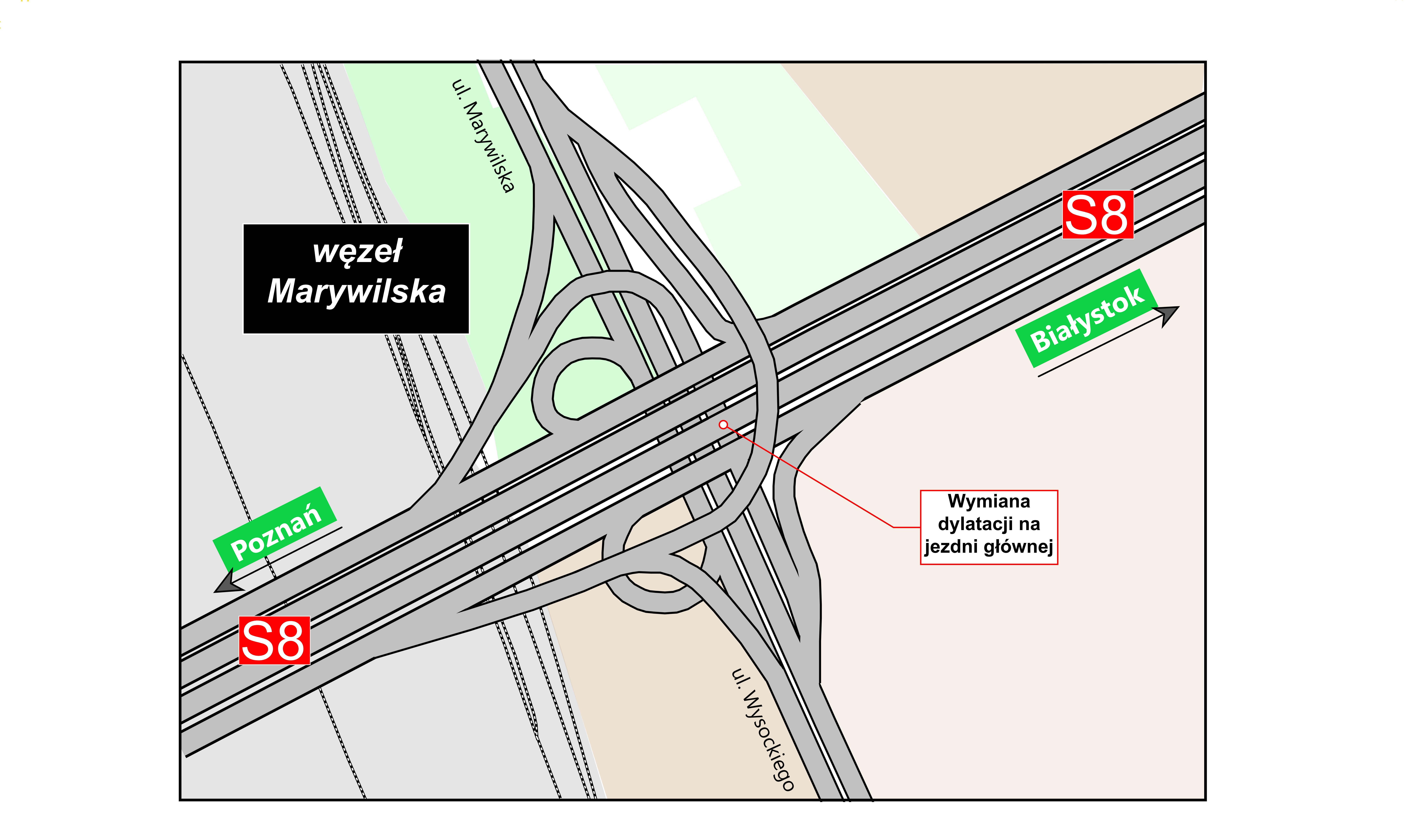 Wymienimy dylatację na węzłach: Wisłostrada i Marywilska w ciągu S8