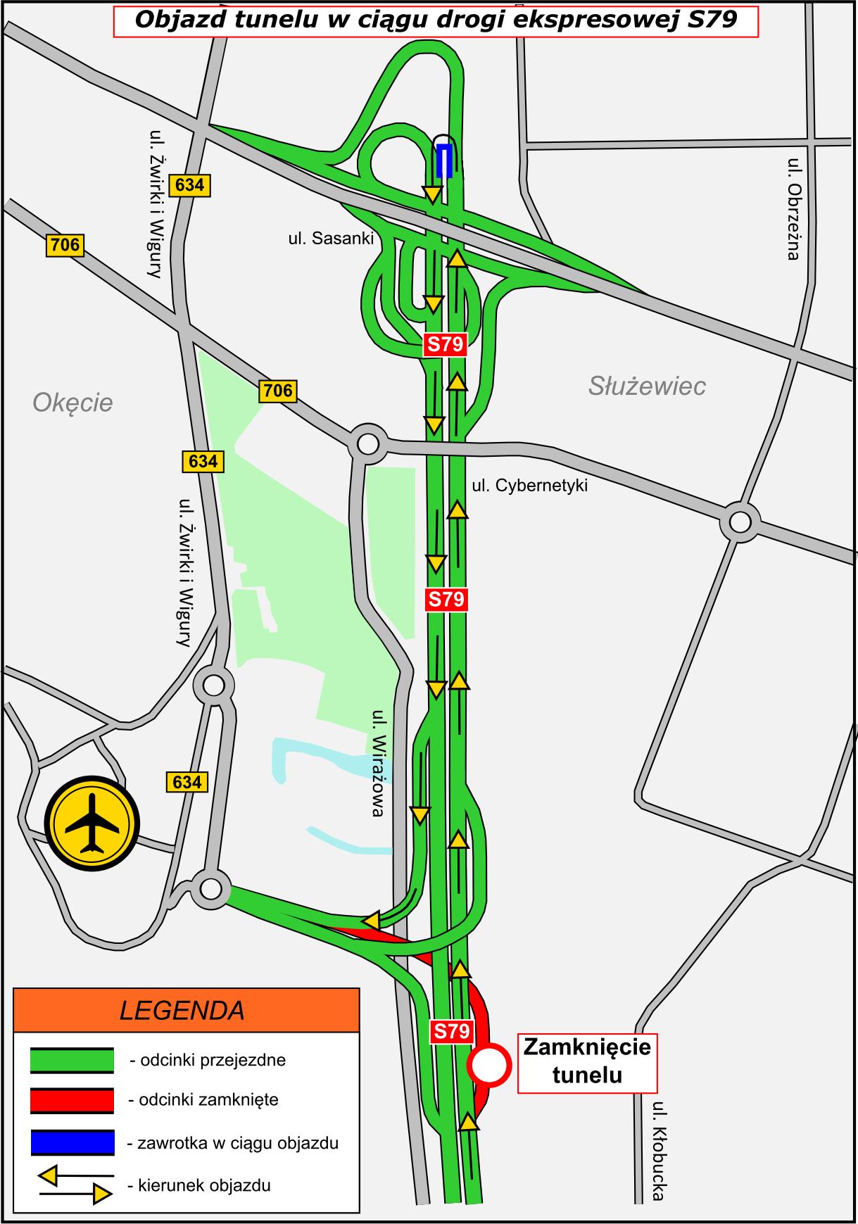 S79 objazd zamkniętej łącznicy na lotniskoOkęcie_objazd_S79_tunel.jpg 0.23MB