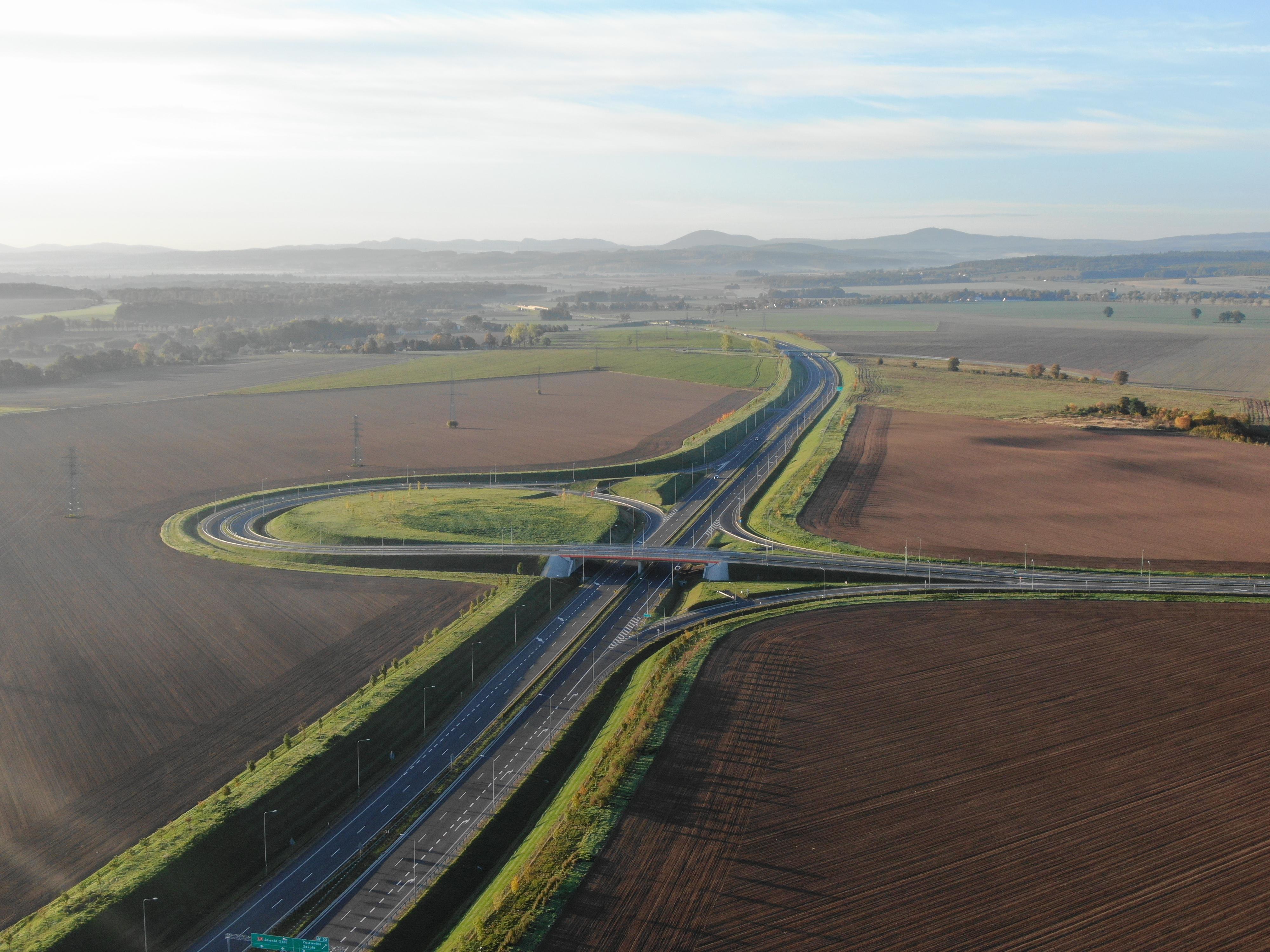 Realizacja drogi ekspresowej S3 na południe od Legnicy, o długości ponad 67 km, rozpoczęła się w 2015 r. Ostatni fragment tej trasy, od Bolkowa do Kamiennej Góry jest na ukończeniu i zostanie oddany do ruchu w wakacje br. Na tym odcinku S3 powstają m.in. dwa tunele drogowe, w tym najdłuższy w kraju pozamiejski tunel drążony w skale o długości ok. 2300 m i krótszy o długości 320 m. W ramach inwestycji wybudowaliśmy siedem węzłów drogowych: Jawor Północ, Jawor Wschód, Jawor Południe, Bolków, Kamienna Góra Północ, Kamienna Góra Południe, Lubawka.