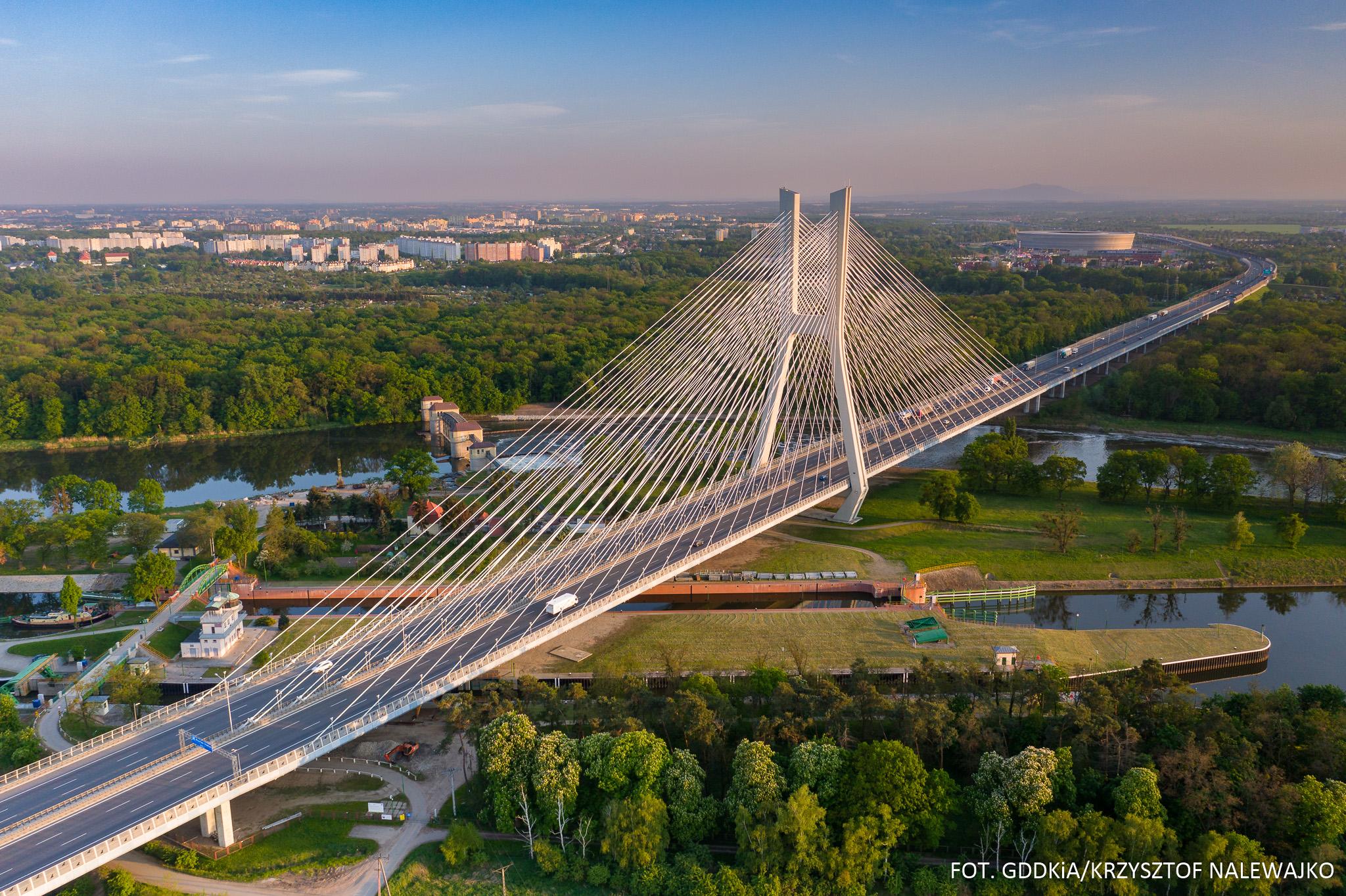 W latach 2008-2011 zrealizowaliśmy Autostradową Obwodnicę Wrocławia A8 wraz z najwyższym w Polsce mostem podwieszonym do jednego pylonu. Łączna długość obwodnicy to prawie 36 km, z czego ok. 23 km to trzypasmowa autostrada. W ramach tej inwestycji powstało siedem węzłów, w tym jeden z największych w kraju – węzeł Wrocław Południe, który połączył obwodnicę z autostradą A4, a także m.in. węzeł Wrocław Północ, łączący trasę z drogą ekspresową S5 na Poznań oraz węzeł Psie Pole – z trasą S8 na Warszawę. Most Rędziński podwieszony na 160 wantach do 122 metrowego pylonu stał się wizytówką Wrocławia i symboliczną bramą wjazdową do miasta. Budowa AOW wyprowadziła ruch tranzytowy z miasta, skomunikowała A4 z Portem Lotniczym i drogami ekspresowymi S5 i S8. Wartość inwestycji wyniosła ponad 4 mld zł, z czego ponad 2,6 mld zostało sfinansowane z funduszy unijnych w ramach programu POIiŚ.