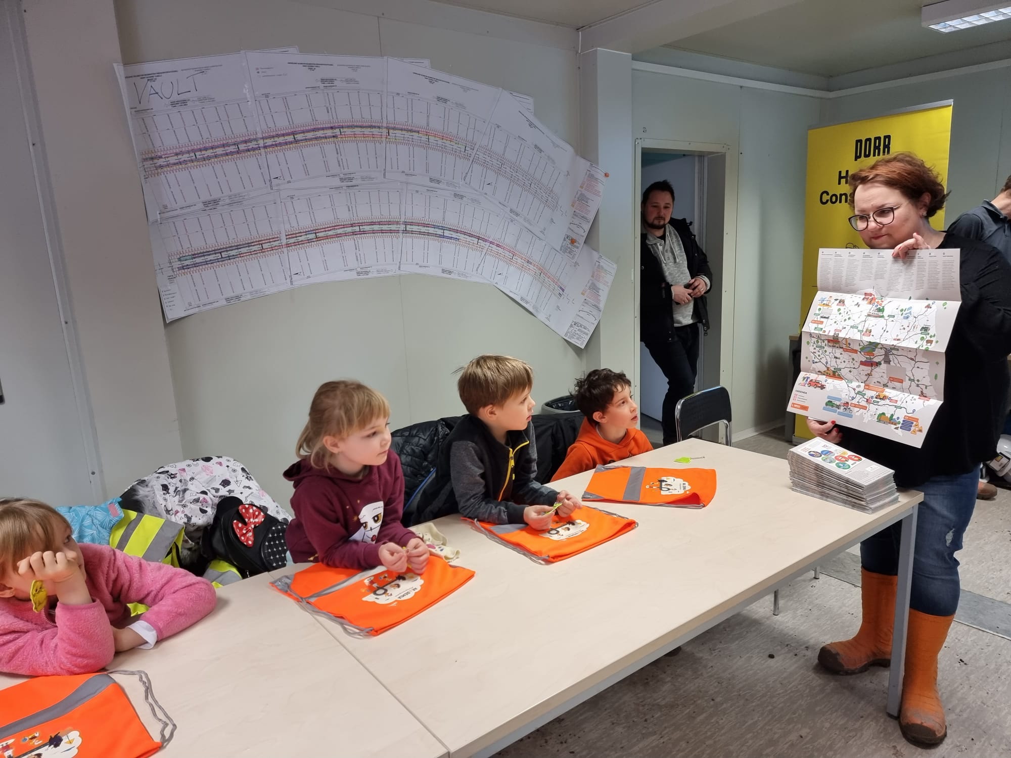Dzieci miały okazję zobaczyć budowę tunelu drogowego, obejrzeć maszyny pracujące na budowie oraz dowiedzieć się wielu ciekawostek o realizacji dróg.