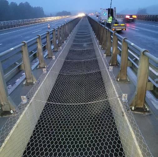 Proces zabezpieczenia prześwitów rozpoczęliśmy od montażu tabliczek ostrzegających przed ryzykiem upadku z wysokości. Docelowo na drogach krajowych województwa dolnośląskiego zabezpieczymy 146 obiektów, o łącznej długości ok. 12 km. W 2021 roku zamontowaliśmy siatki na 25 obiektach m.in. na drodze ekspresowej S8 czy autostradzie A4. Pozostałe prześwity pomiędzy obiektami inżynierskimi, które znajdują się m.in. na drodze ekspresowej S5 czy Autostradowej Obwodnicy Wrocławia, będziemy sukcesywnie zabezpieczać do 2023 roku.