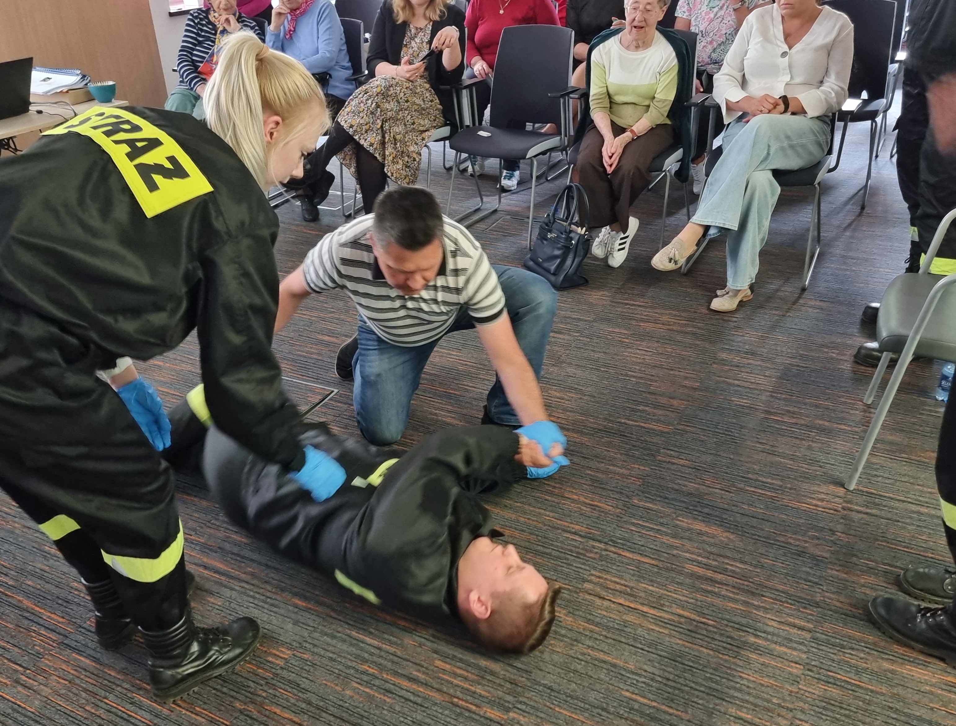 Wielkim zainteresowaniem cieszył się pokaz udzielania pierwszej pomocy przedmedycznej wykonany przez Ochotników Straży Pożarnej z Miłkowic k. Legnicy. Ochotnicy opowiedzieli na co zwracać uwagę podczas udzielania pomocy poszkodowanemu, przypomnieli o najistotniejszych elementach wykonując połączenie na numer alarmowy 112 oraz o roli urządzenia AED.