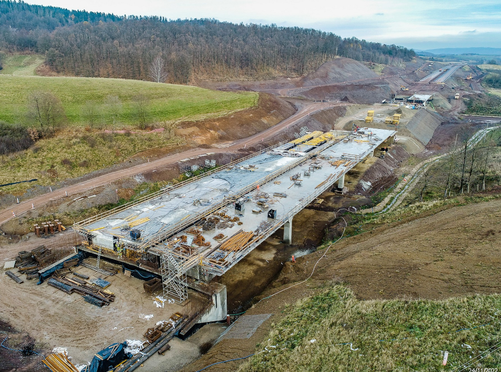 W I połowie 2022 r. zakończyło się nasuwanie pięciu estakad, których długość wynosi od 435 do prawie 600 m. Łączna długość obiektów inżynierskich wynosi prawie 4,5 km, co stanowi ok. 29 procent całej realizowanej trasy. Dużym wyzwaniem dla wykonawcy było nasuwanie wszystkich estakad w jednym czasie. Technologia nasuwania podłużnego ma swoje zalety, m.in. ograniczenie przestrzeni, na której prowadzone są prace budowlane, a także umożliwia prowadzenie ich niezależnie od warunków atmosferycznych. Za pomocą tej metody możliwe jest wykonywanie obiektów nad czynnymi drogami, jak to miało miejsce na realizowanym węźle Kamienna Góra Północ, gdzie obiekt znajduje się bezpośrednio nad drogą krajową nr 5.