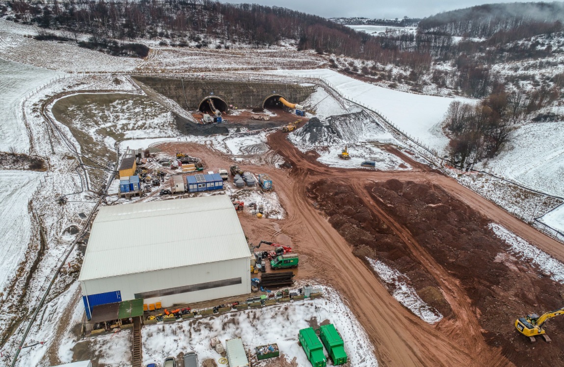 Mimo przerwy zimowej prace na budowie idą pełną parą. Wykonawca nie poprzestaje tylko na drążeniu tunelu, ale prowadzi także prace w zakresie robót drogowych oraz mostowych.