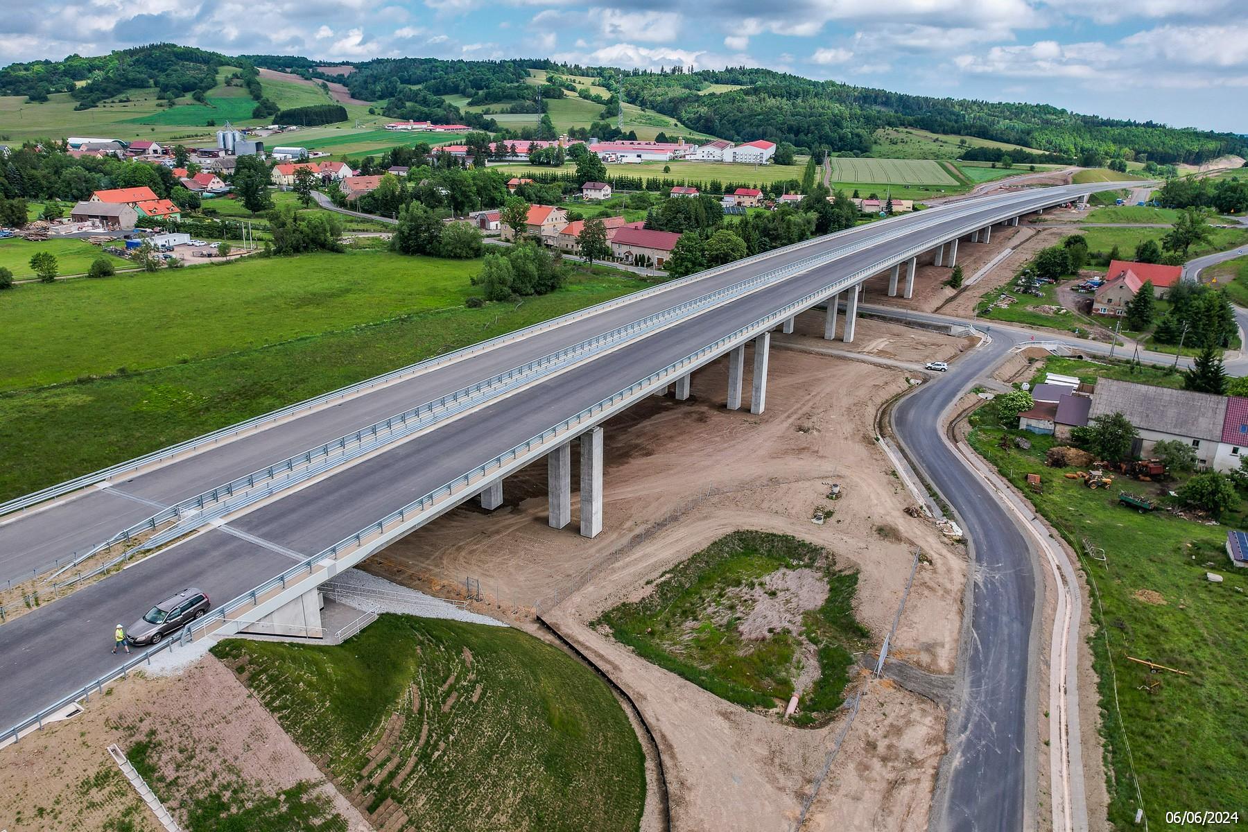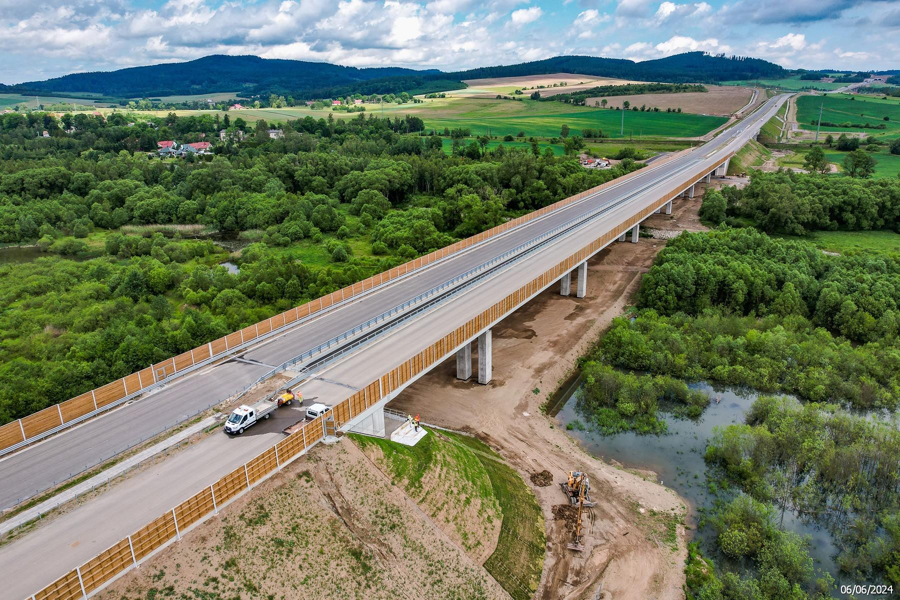 Nowy odcinek trasy dosłownie przebija się przez malownicze krajobrazy Sudetów, obejmując aż 69 obiektów inżynierskich, w tym dwa wspomniane wcześniej tunele. Zaawansowanie prac i robót wynosi już ponad 95 proc. Na drogach i mostach trwają intensywne prace związane z układaniem mas bitumicznych, humusowaniem, montażem znaków, ogrodzenia i barier ochronnych, a w tunelu TS-26 i TS-32 prowadzone są testy systemów bezpieczeństwa.