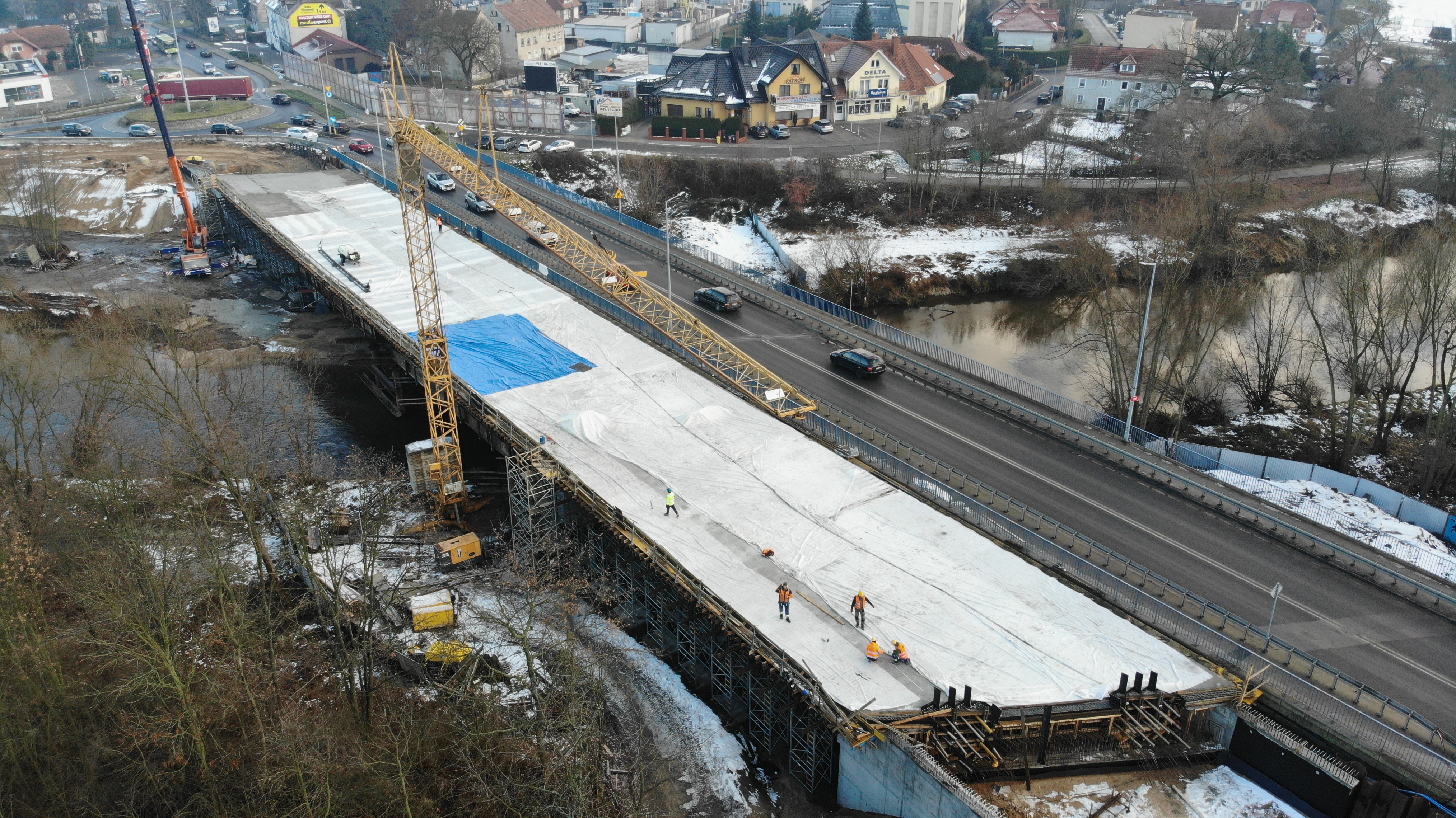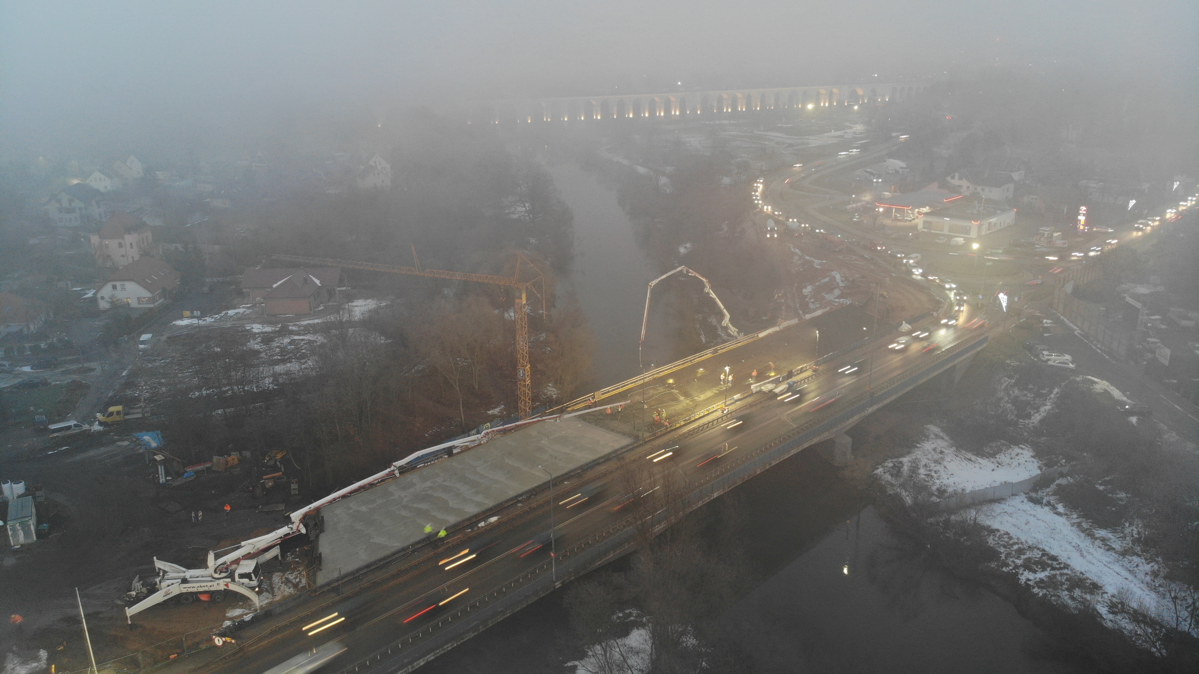 Na początku grudnia wykonaliśmy betonowanie ustroju nośnego nowego, północnego mostu. Przez kolejne dwa tygodnie prowadzona była pielęgnacja oraz proces dojrzewania mieszanki betonowej. Właśnie rozpoczął się etap sprężania ustroju nośnego.