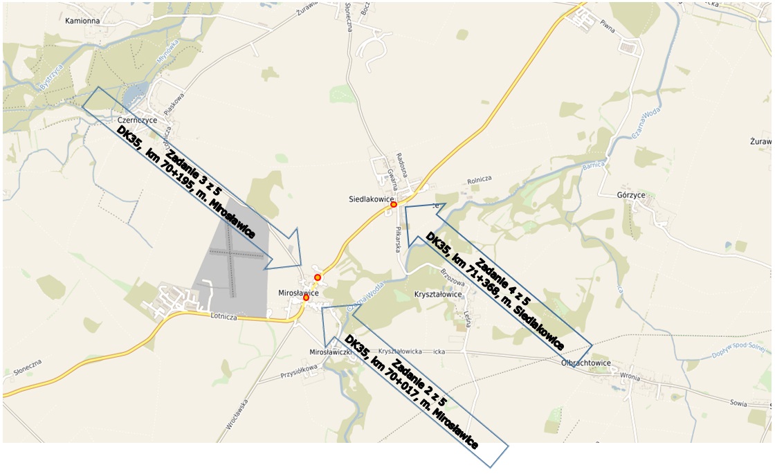 Ogłosiliśmy postępowanie przetargowe na poprawę bezpieczeństwa ruchu drogowego na przejściach dla pieszych na drodze krajowej nr 35 w Wojnarowicach, Mirosławicach, Siedlakowicach i Gniechowicach.