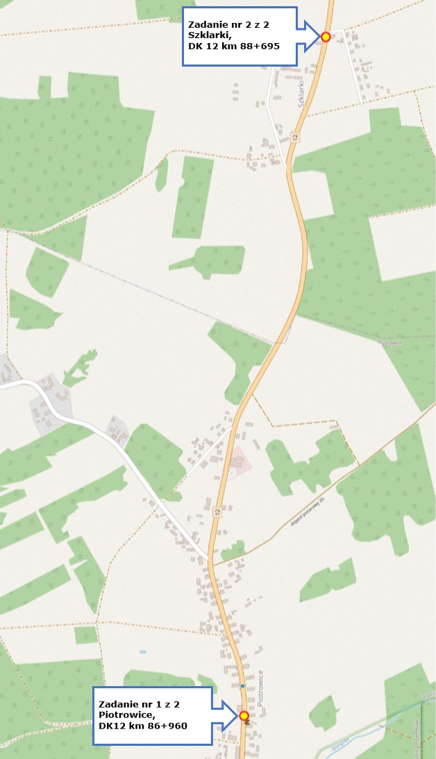 Na DK12 wybudujemy oświetlenie dedykowane na przejściach w Piotrowicach i Szklarkach wraz z wykonaniem przyłączy do istniejącej sieci oświetlenia drogowego. Przed przejściami wykonane będą z obu stron płytki dla osób niedowidzących i niewidomych. W Szklarkach dodatkowo wykonamy oświetlenie strefy przejściowej skrzyżowania, a w Piotrowicach wybudujemy ok. 50 metrów brakującego chodnika. Wartość inwestycji zgodnie z umową wynosi ponad 392 tys. zł.
