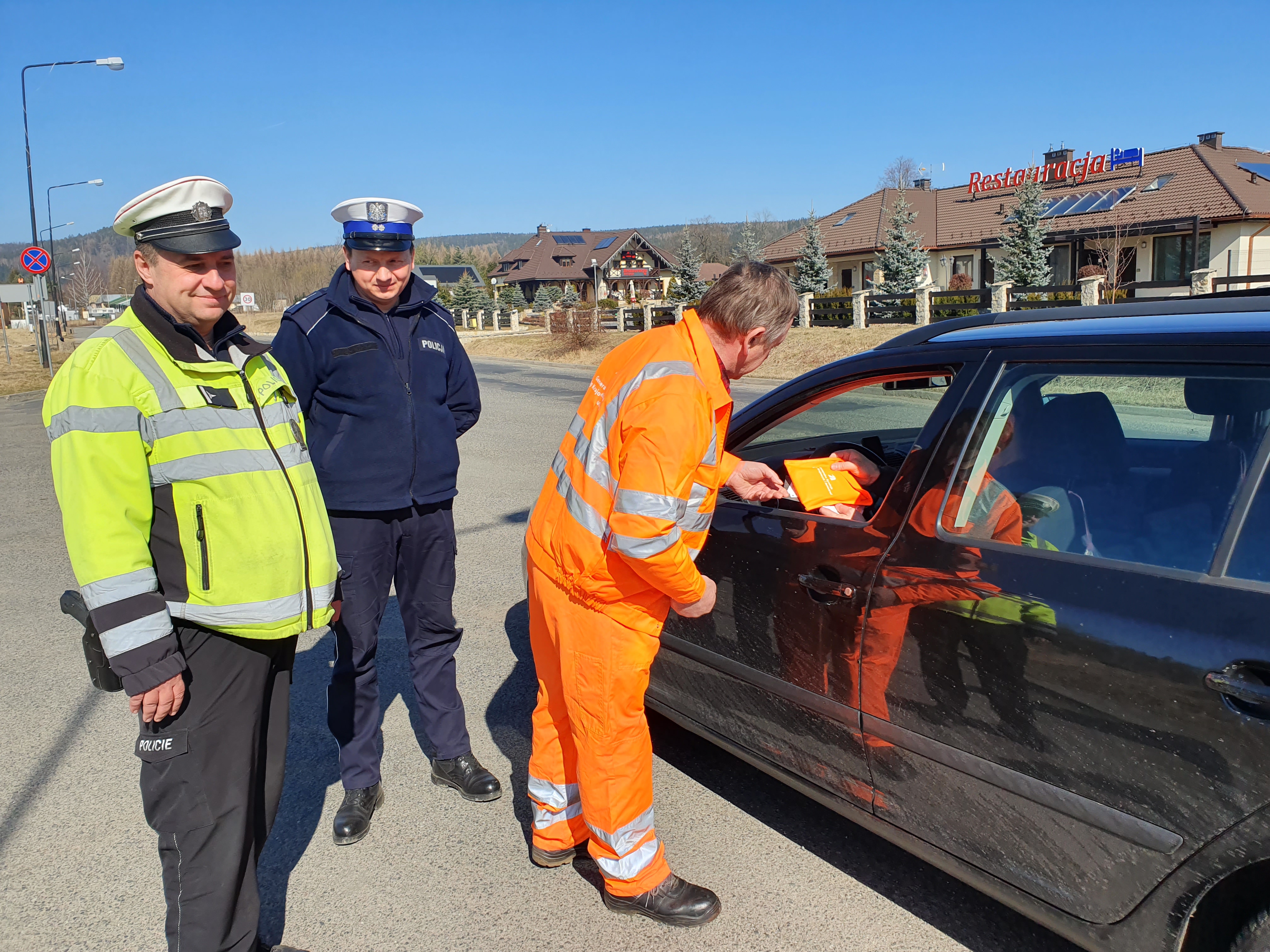 „Na drodze - patrz i słuchaj” - pod tym hasłem odbyła się akcja prewencyjna, którą przeprowadziliśmy wspólnie z policjantami Wydziału Ruchu Drogowego Komendy Powiatowej Policji w Kłodzku oraz policją czeską na drodze krajowej nr 8 w Szczytnej.