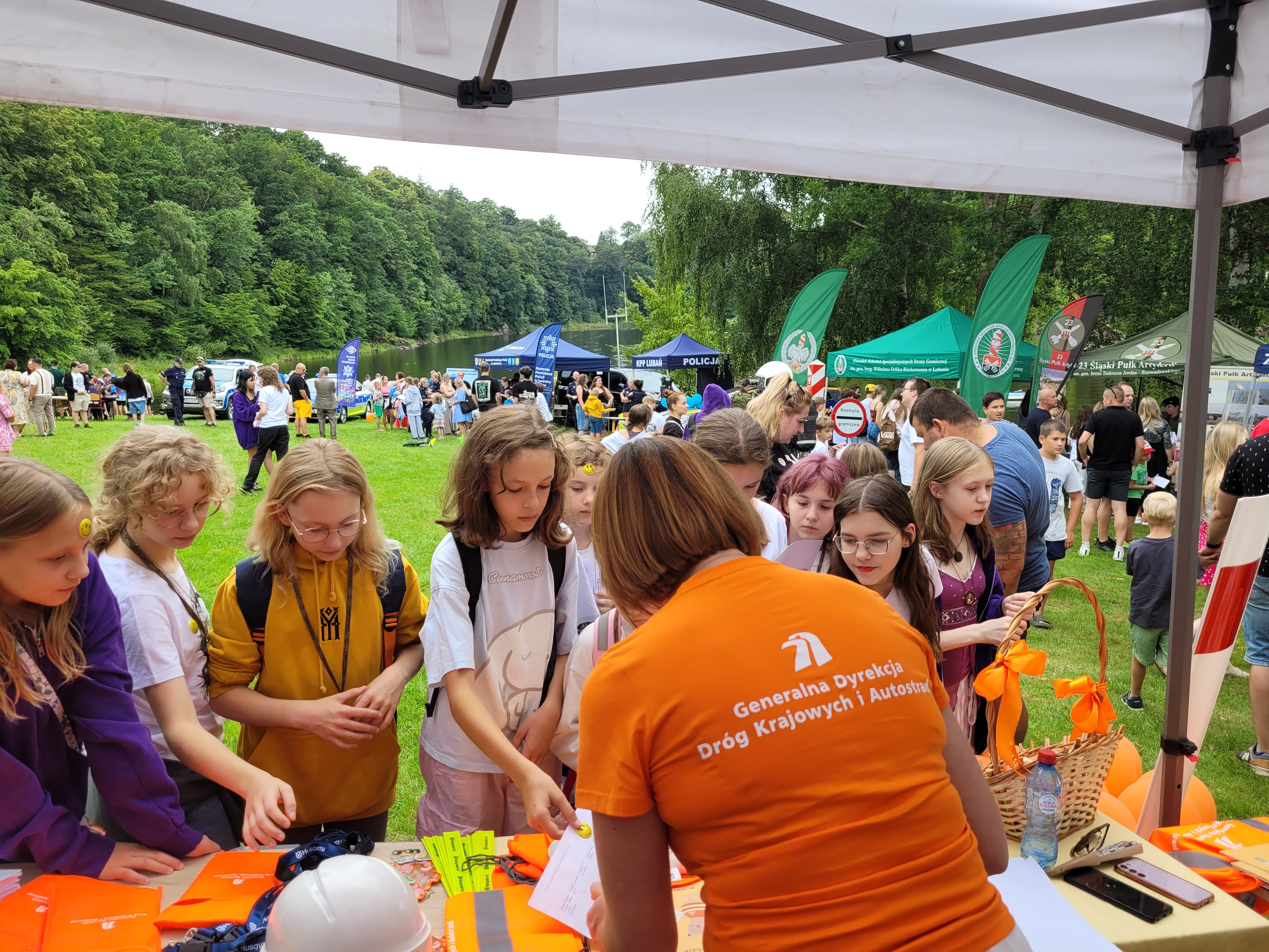 Wraz z przedstawicielami służb mundurowych i nie tylko, edukowaliśmy zarówno dzieci jak i dorosłych o bezpieczeństwie w ruchu drogowym. Uczestnicy wydarzenia mieli okazję porozmawiać o bezpieczeństwie na stoiskach służb oraz wziąć udział w pokazach, konkursach i zabawach. Prezentowane była m.in. pierwsza pomoc dla ludzi i psów, akcje poszukiwawcze, ratownictwo wodne, szkolenie z obrony przed atakiem psa, policyjne skutery wodne, wojskowy sprzęt i specjalistyczne pojazdy. Najmłodszych odwiedził także uwielbiany Komisarz Lew. Uroku całemu wydarzeniu niewątpliwie dodało również sąsiedztwo i widok na zamek Czocha. Jako GDDKiA promowaliśmy pracę drogowców i uczyliśmy starszych i młodszych o zasadach bezpieczeństwa w ruchu drogowym. Każdy kto poprawnie odpowiedział na drogowe pytania otrzymał od nas gadżety z logo GDDKiA.