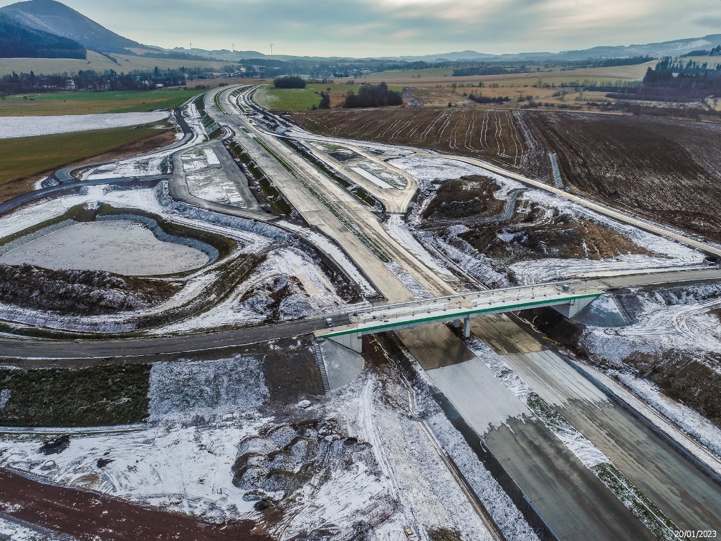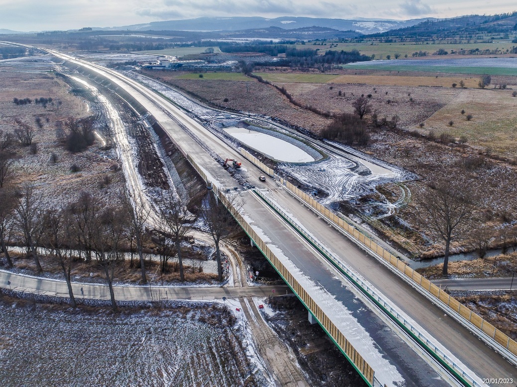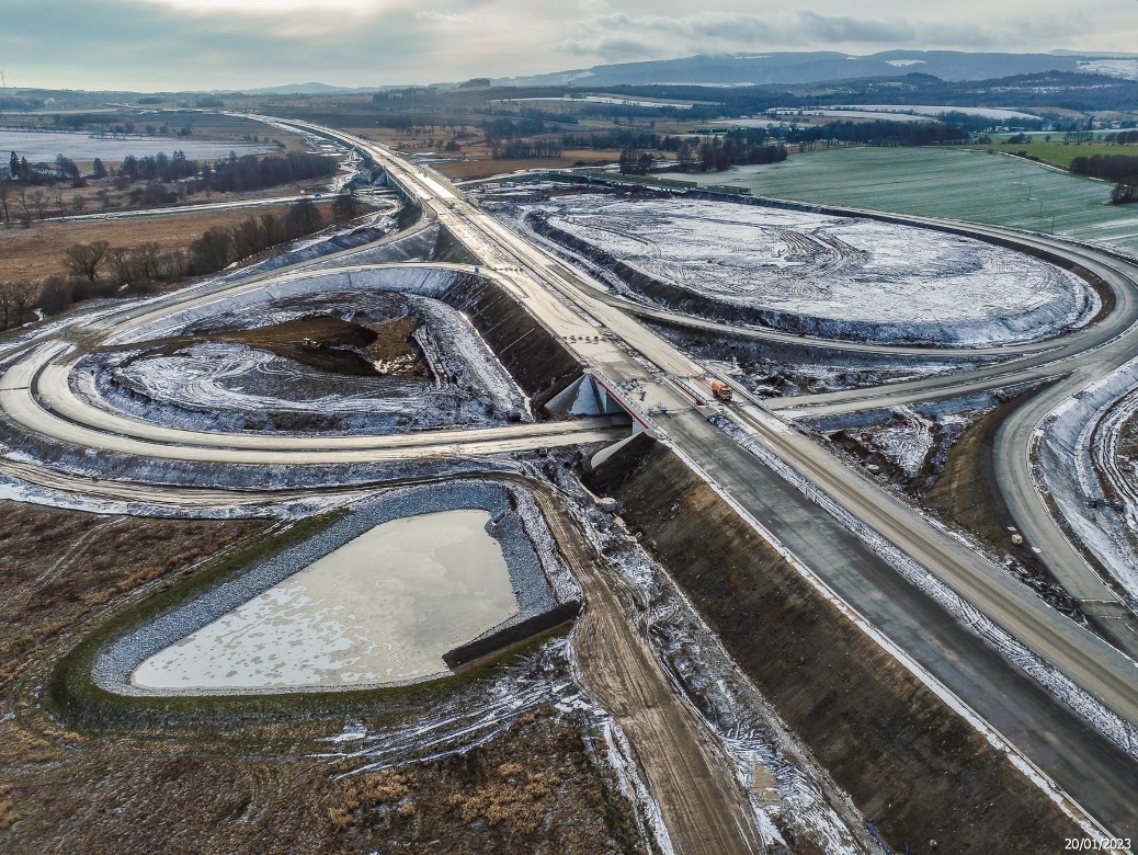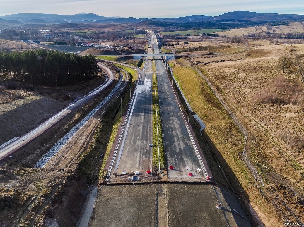 Obecna pogoda pozwala prowadzić niektóre prace przy budowie drogi ekspresowej S3 na odcinku przygranicznym. Zaawansowanie rzeczowe robót sięga prawie 94%. W ostatnim tygodniu pracowało 231 osób i 82 maszyny budowlane.