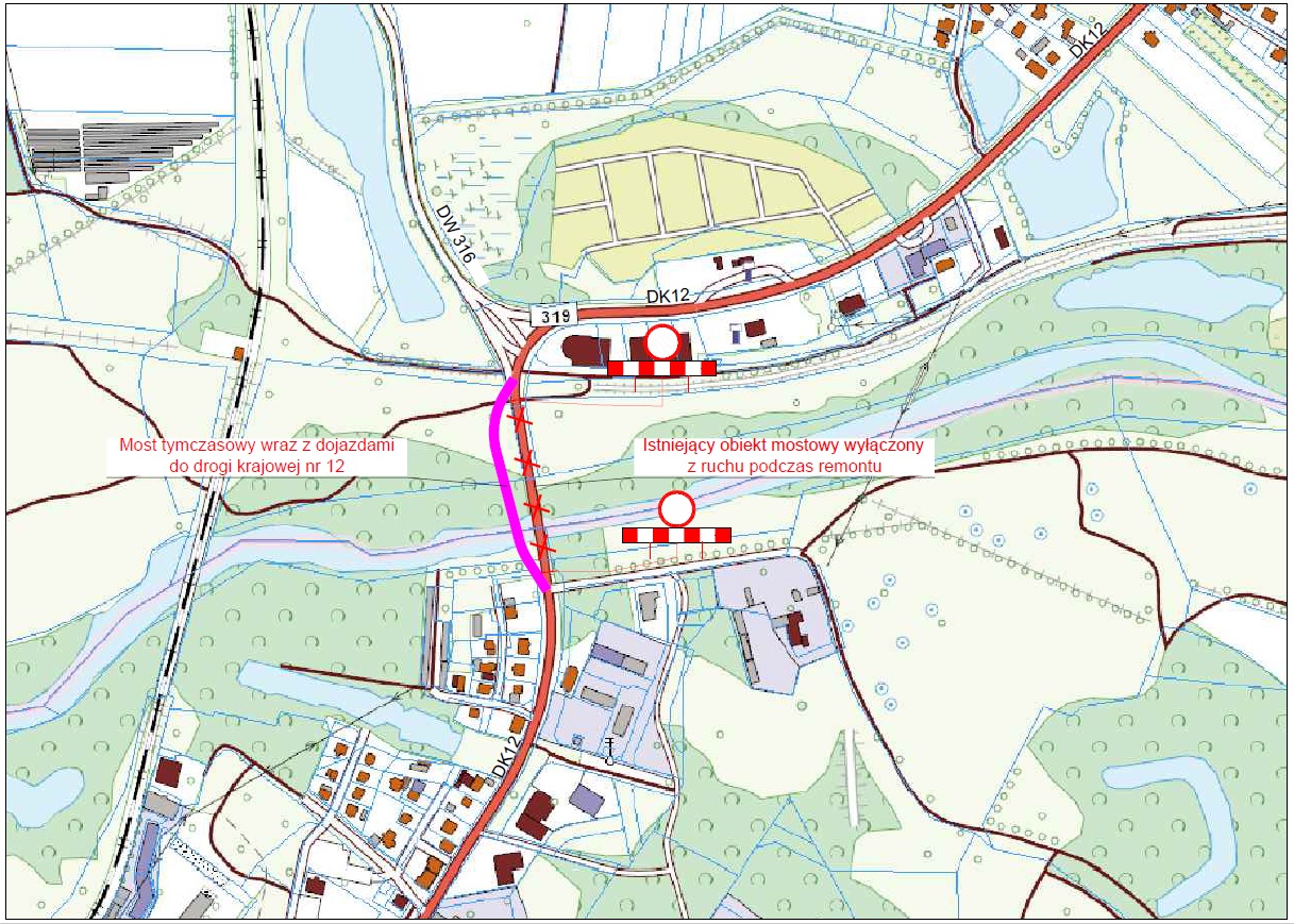 Remont będzie dotyczył wymiany nawierzchni jezdni i chodników, skorodowanej górnej powierzchni żelbetowej płyty pomostowej, balustrad, dylatacji oraz innych elementów wyposażenia obiektu. Remont będzie odbywał się przy całkowitym zamknięciu ruchu, dlatego obok istniejącego mostu powstawał most tymczasowy z mostem wysokowodnym, który pozwoli na utrzymanie ruchu w ciągu DK12.